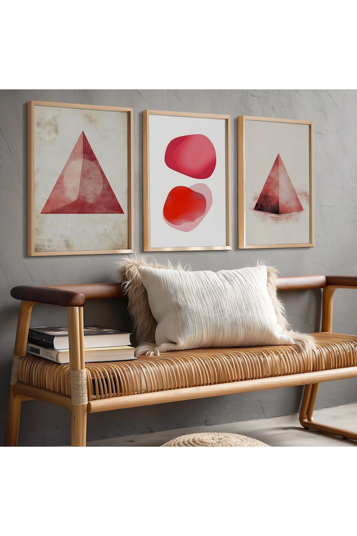 DOĞAL AHŞAP - Abstract Modern Geometrik Sanat Üçlü Doğal Ahşap Çerçeveli Duvar Tablo Seti