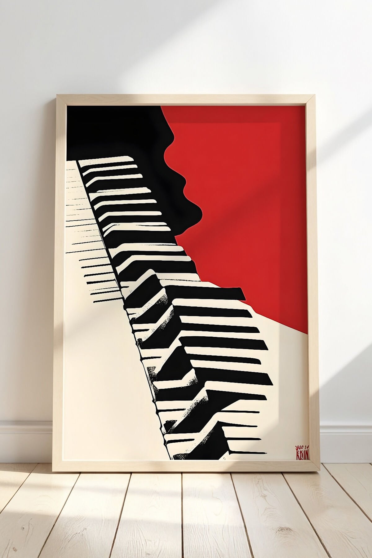 DOĞAL AHŞAP - Abstract Müzik Ve Sanat Doğal Ahşap Çerçeveli Duvar Tablosu