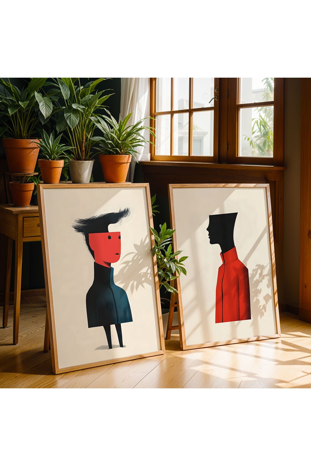 DOĞAL AHŞAP - Abstract Siluet Sanatı İkili Doğal Ahşap Çerçeveli Duvar Tablo Seti