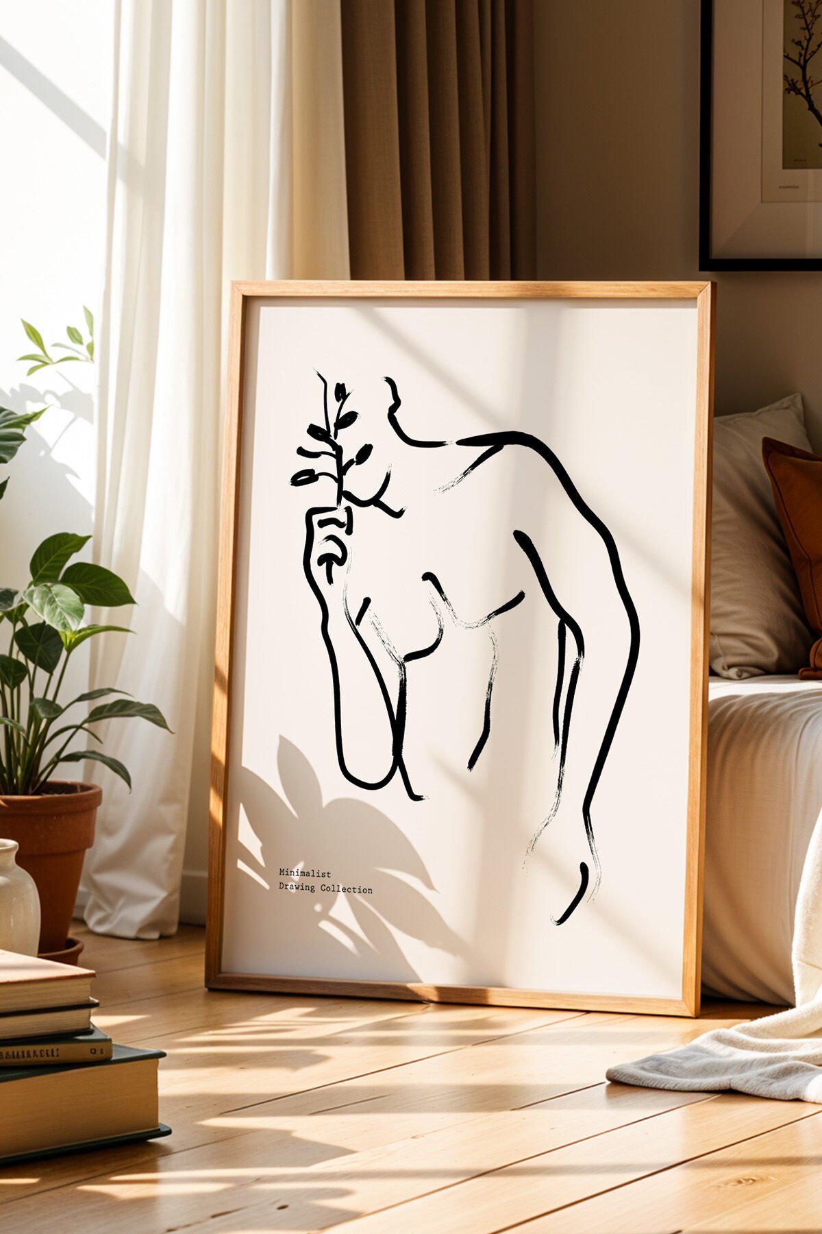 DOĞAL AHŞAP - Alfa Erkek Çizimi Bohem Doğal Ahşap Çerçeveli Duvar Tablosu