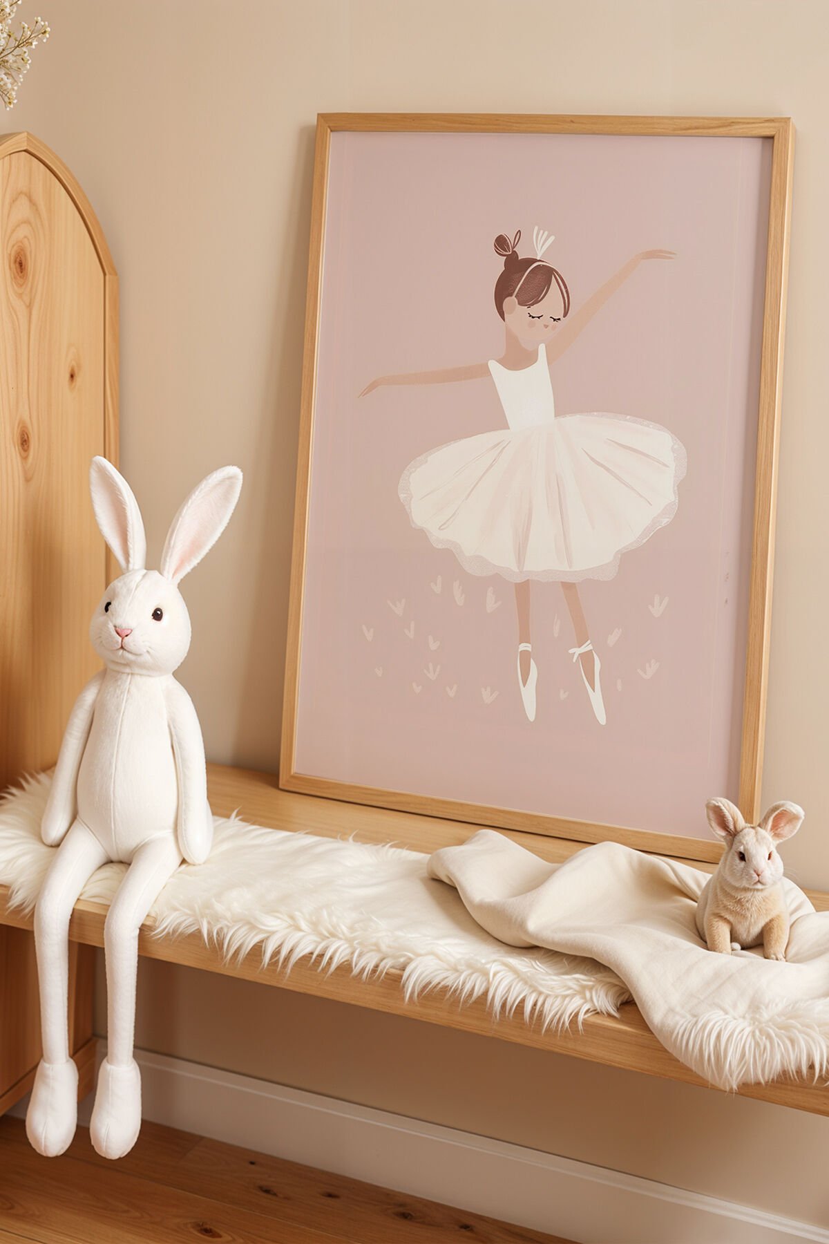 DOĞAL AHŞAP - Balerin Kız Doğal Ahşap Çerçeveli Çocuk ve Bebek Odası Tablosu