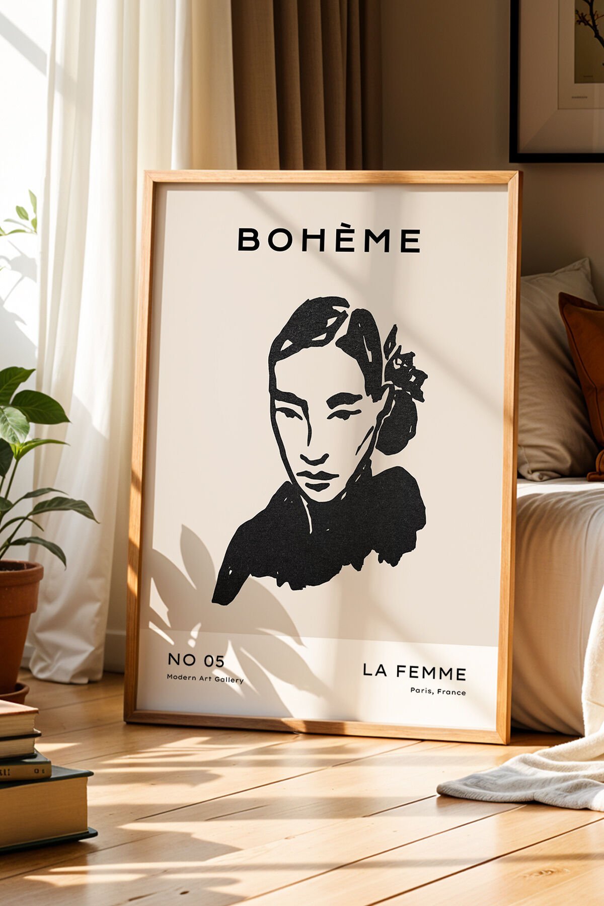 DOĞAL AHŞAP - Bohem Kadın Portresi Doğal Ahşap Çerçeveli Duvar Tablosu