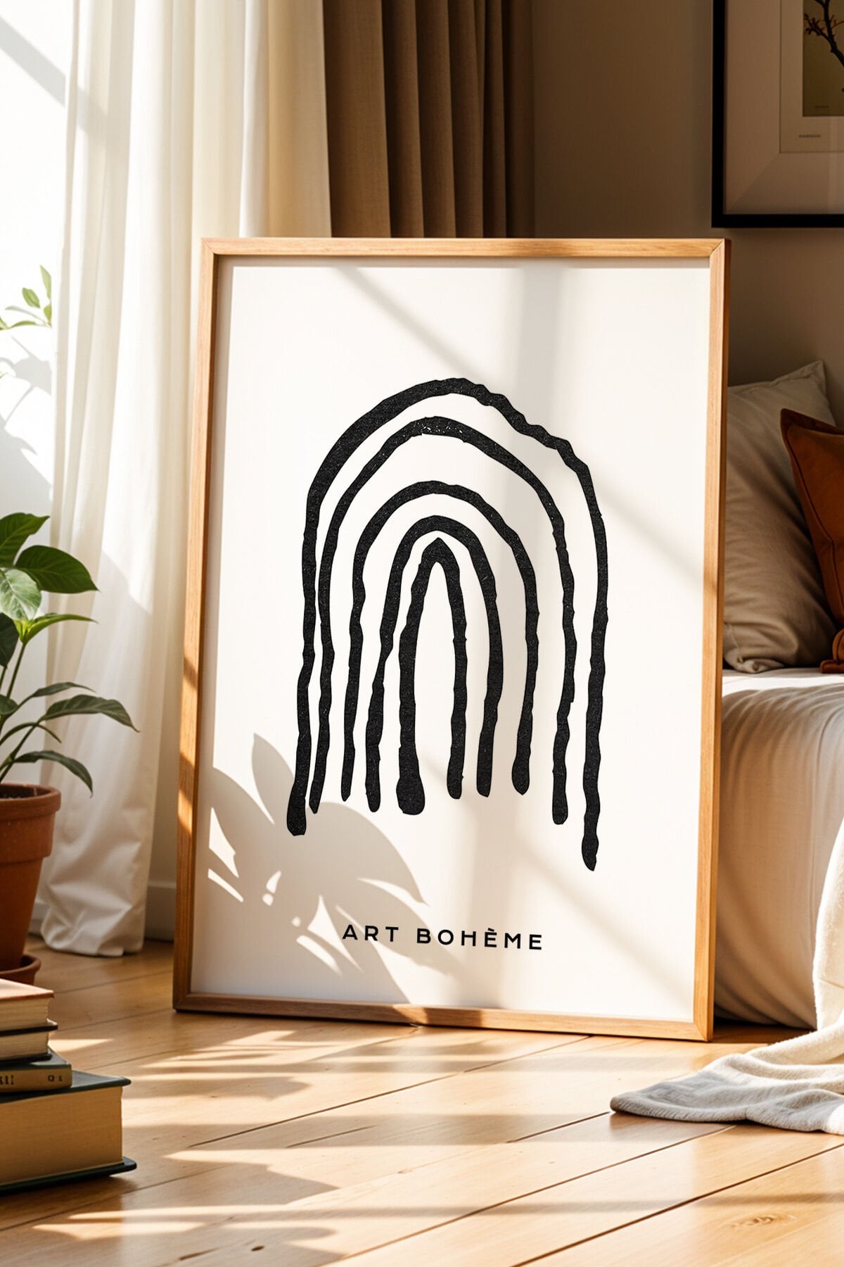 DOĞAL AHŞAP - Bohem Soyut Yaylar Doğal Ahşap Çerçeveli Duvar Tablosu