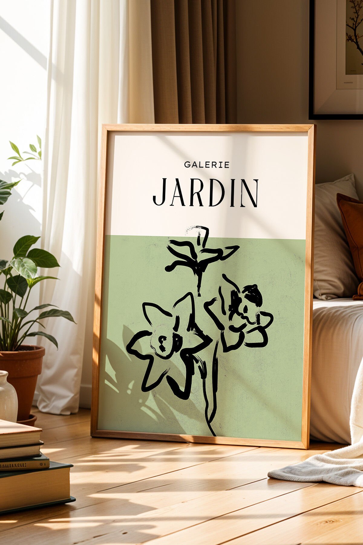 DOĞAL AHŞAP - Bohem Tarzı Botanik Dokunuşlu Yeşil Renkli Minimalist Doğal Ahşap Çerçeveli Duvar Tablosu