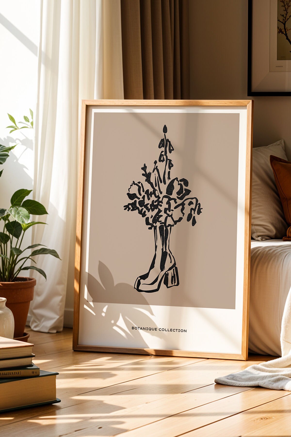 DOĞAL AHŞAP - Botanik Ruh – Minimalist Bohem Doğal Ahşap Çerçeveli Duvar Tablosu