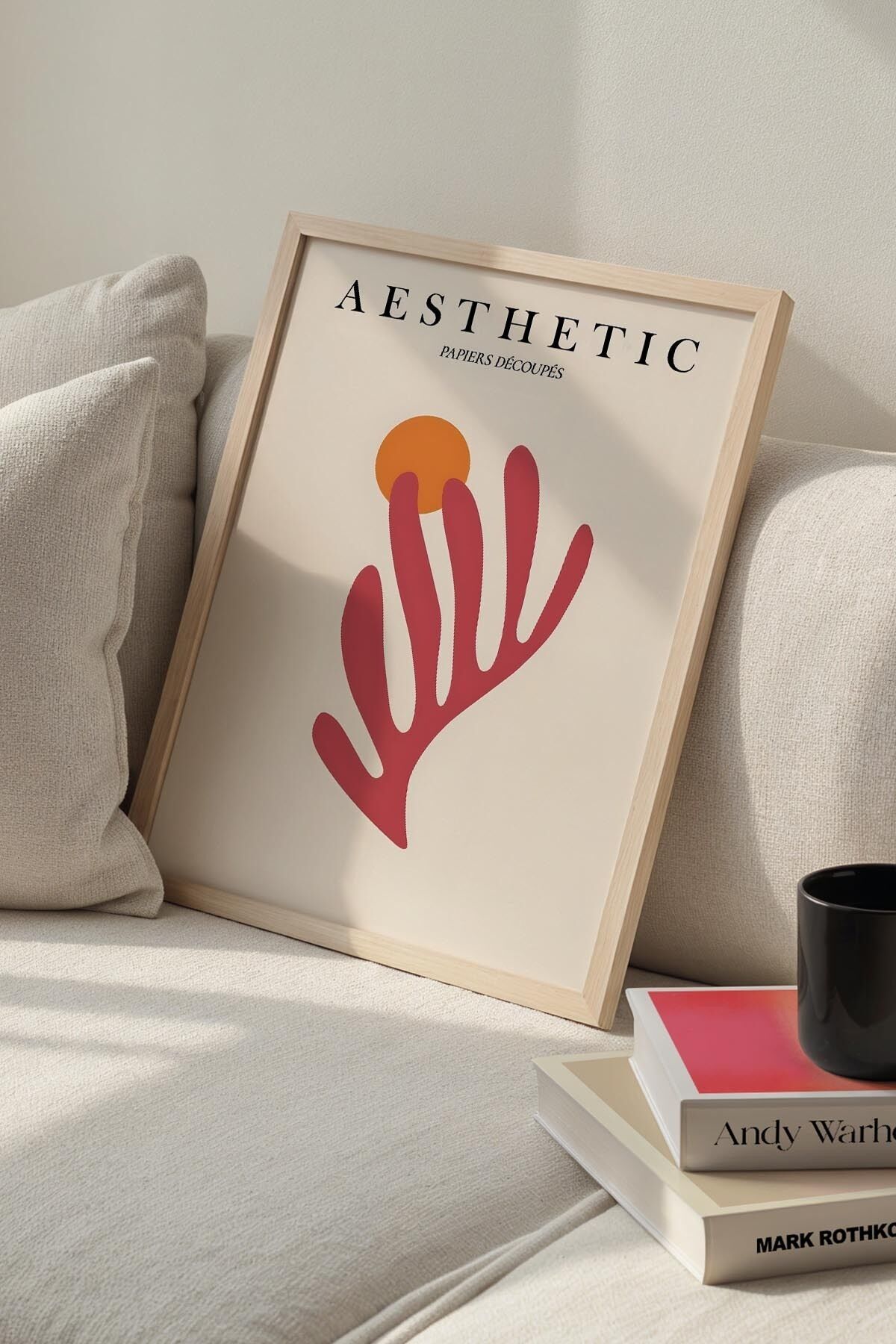 DOĞAL AHŞAP - Botanik Serisi Çiçekli Minimalist Matisse Doğal Ahşap Çerçeveli Duvar Tablosu