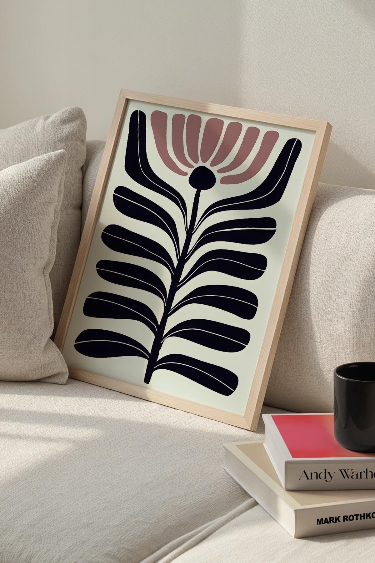 DOĞAL AHŞAP - Botanik Serisi Gül Kurusu Çiçekli Matisse Doğal Ahşap Çerçeveli Duvar Tablosu