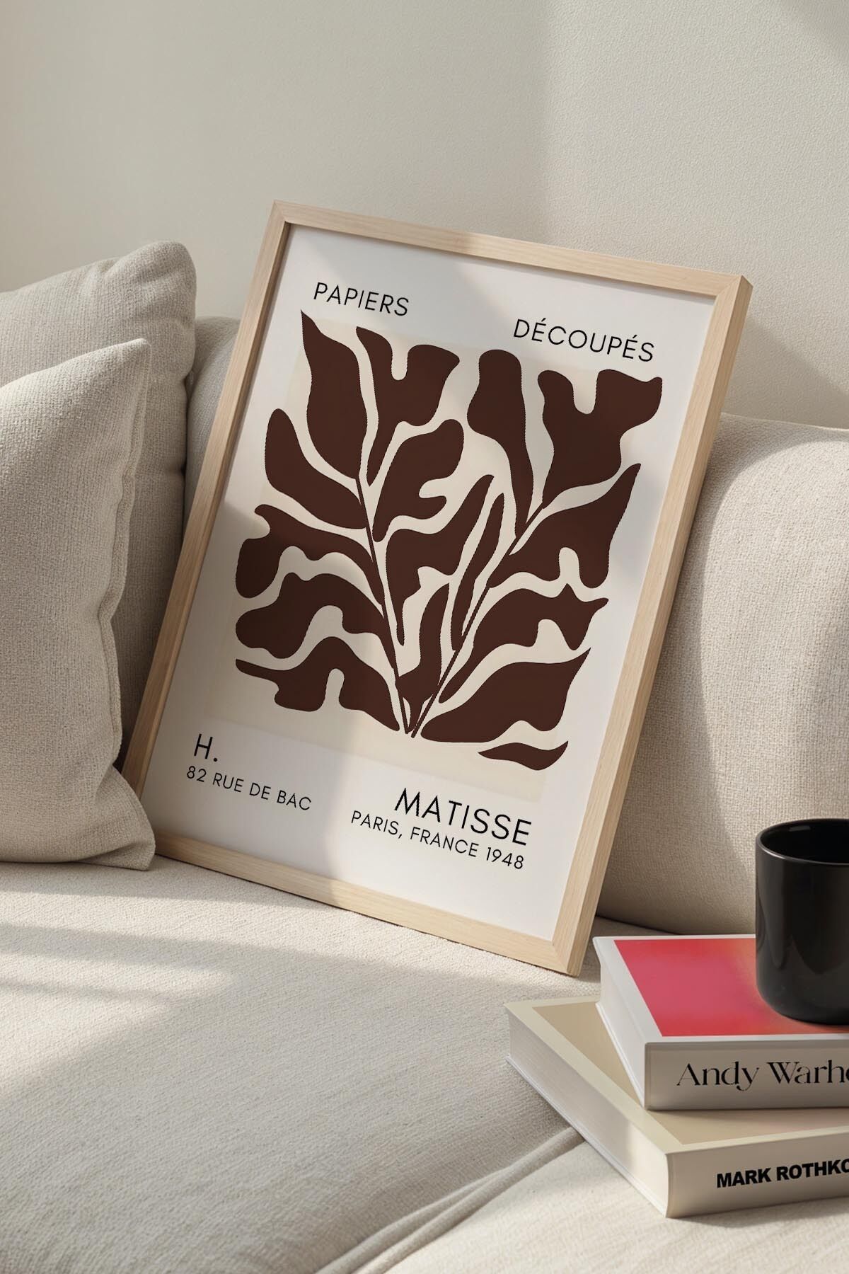 DOĞAL AHŞAP - Botanik Serisi Koyu Kahverengi Çiçekli Matisse Doğal Ahşap Çerçeveli Duvar Tablosu BHM-189t