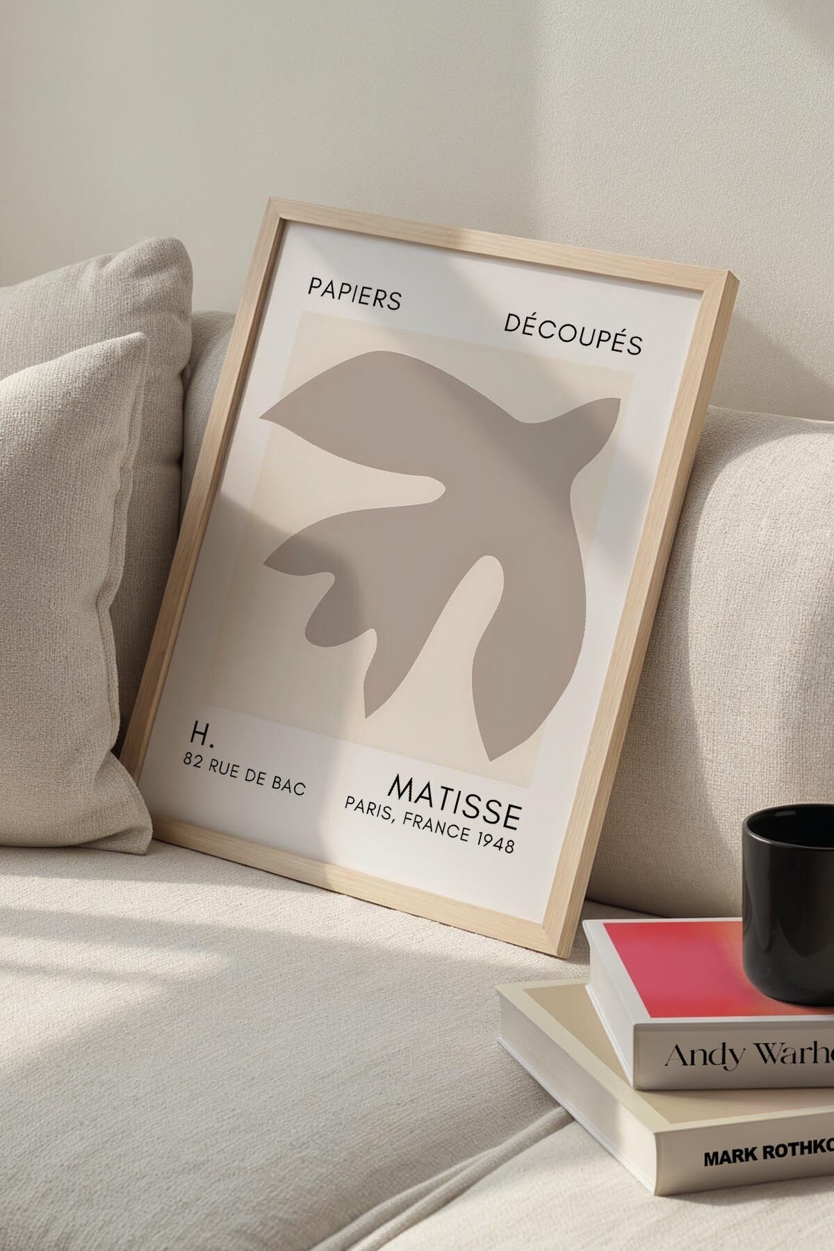 DOĞAL AHŞAP - Botanik Serisi Kum Beji Çiçekli Matisse Doğal Ahşap Çerçeveli Duvar Tablosu