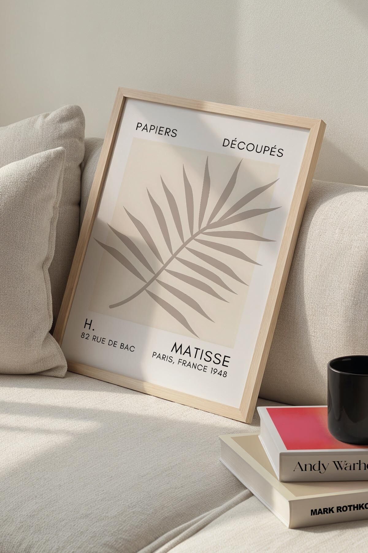 DOĞAL AHŞAP - Botanik Serisi Kum Beji Çiçekli Matisse Doğal Ahşap Çerçeveli Duvar Tablosu