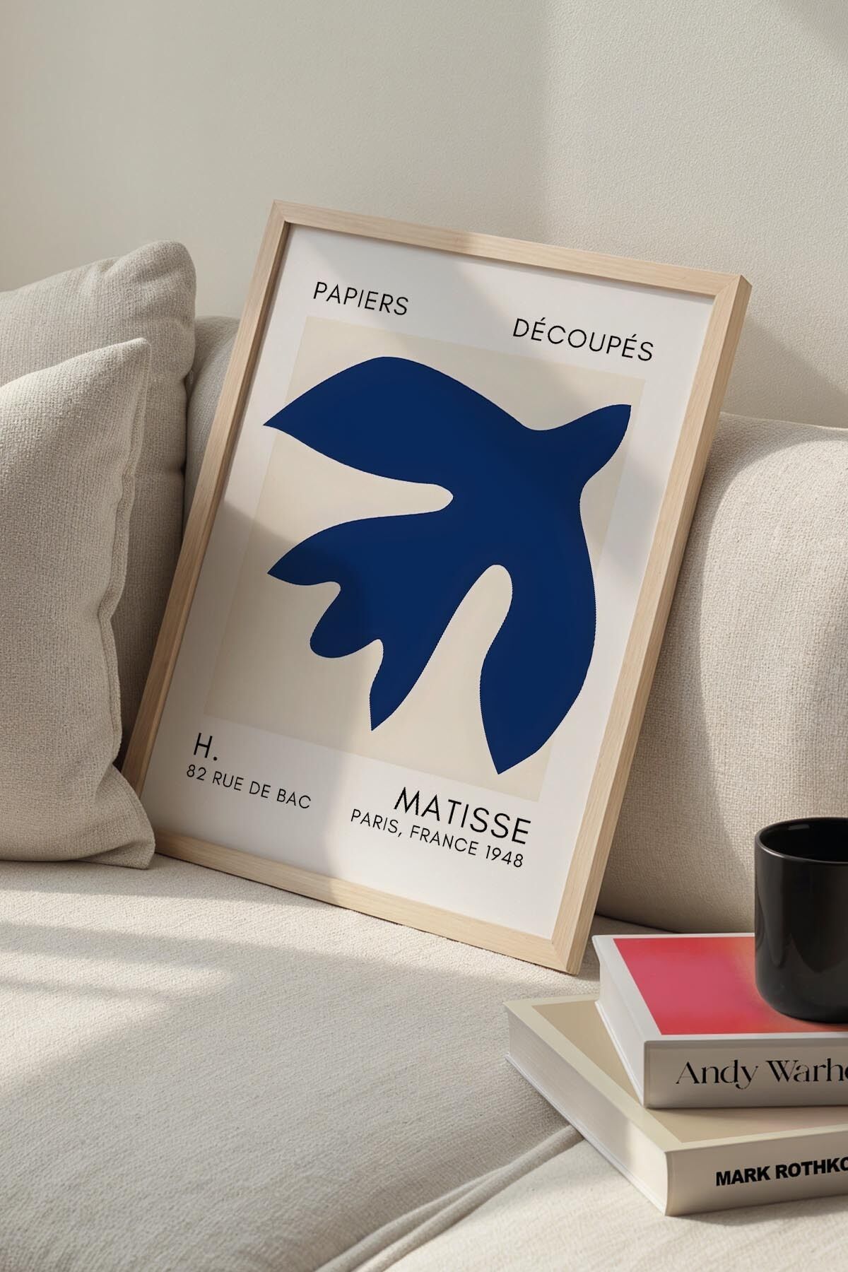 DOĞAL AHŞAP - Botanik Serisi Lacivert Çiçekli Matisse Doğal Ahşap Çerçeveli Duvar Tablosu