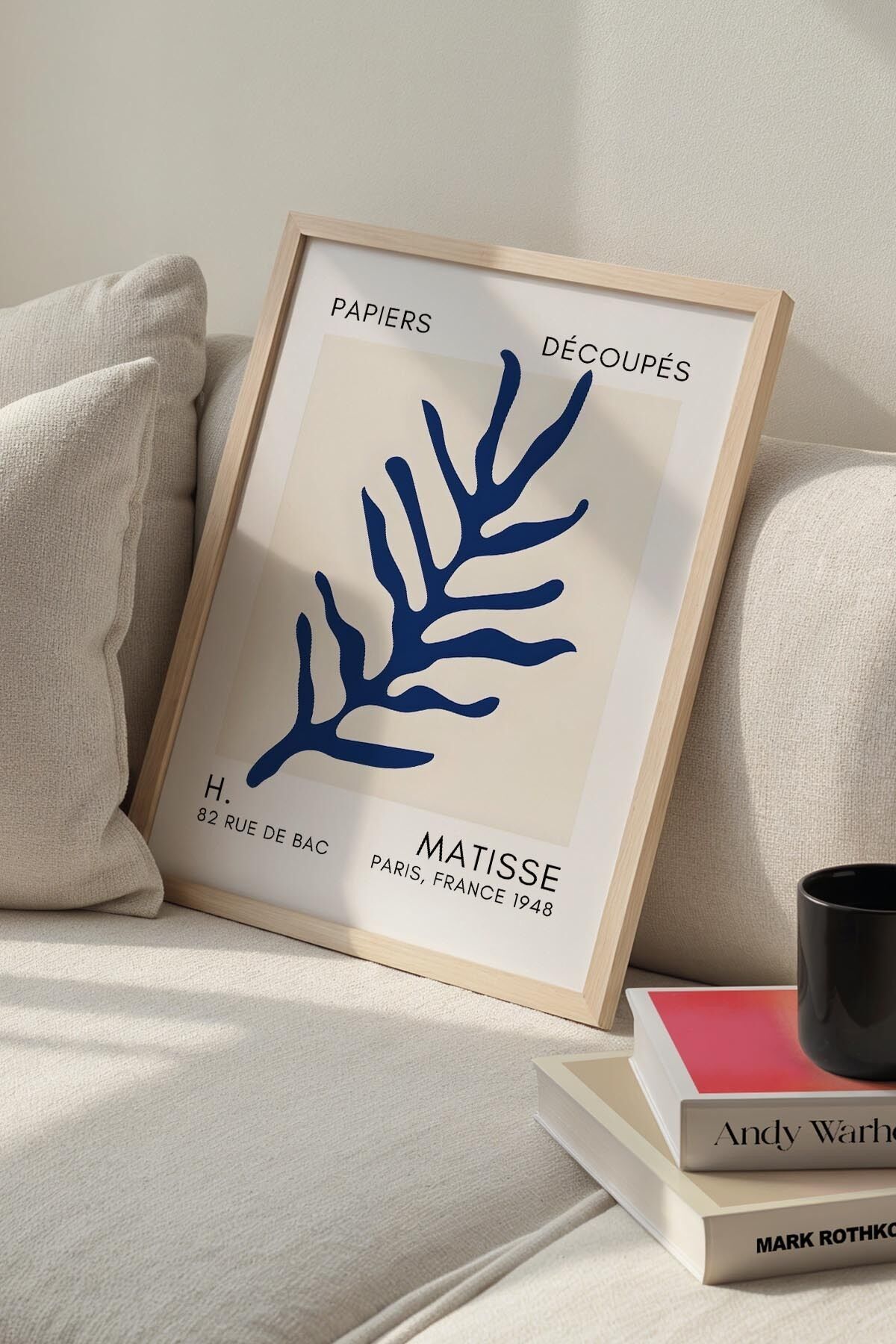 DOĞAL AHŞAP - Botanik Serisi Lacivert Çiçekli Matisse Doğal Ahşap Çerçeveli Duvar Tablosu