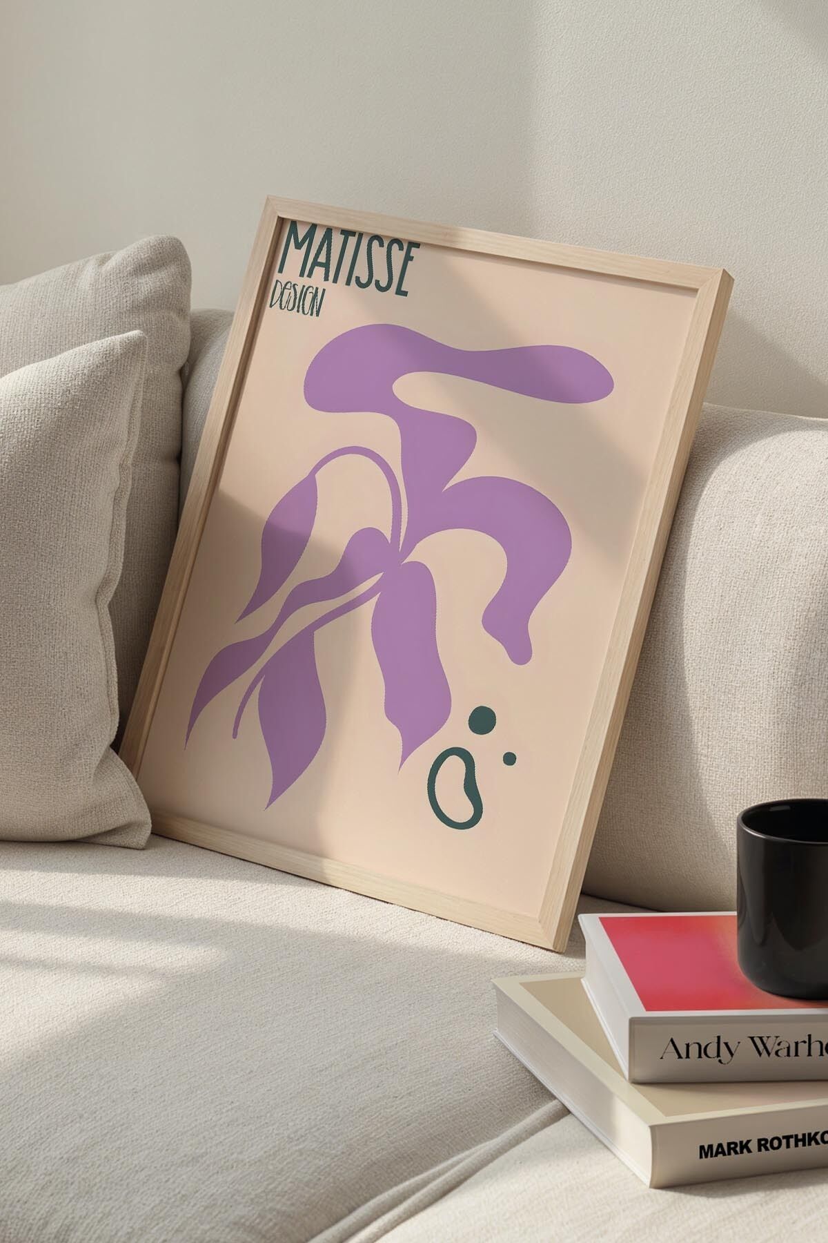 DOĞAL AHŞAP - Botanik Serisi Leylak Moru Çiçekli Matisse Doğal Ahşap Çerçeveli Duvar Tablosu