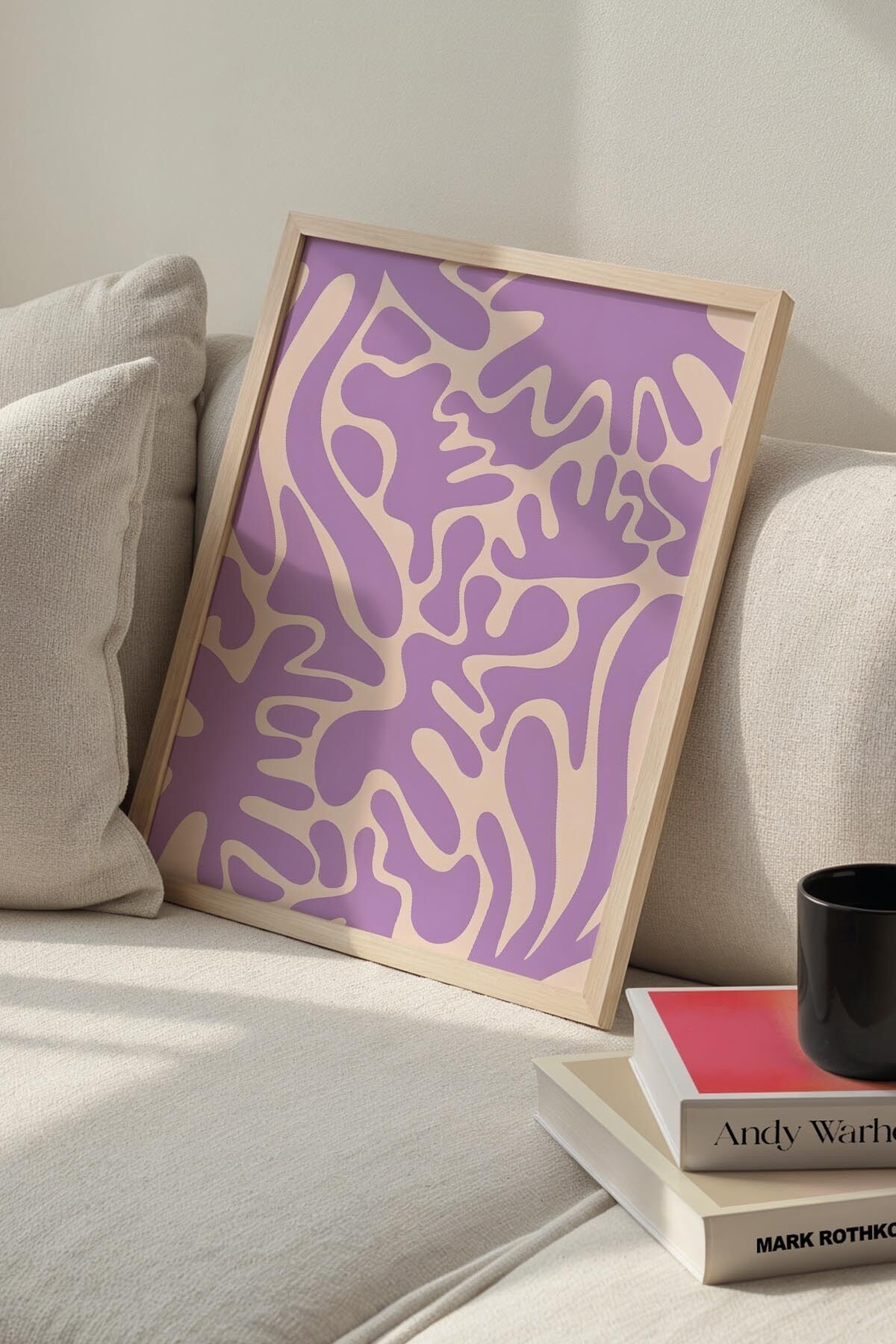 DOĞAL AHŞAP - Botanik Serisi Leylak Moru Çiçekli Matisse Doğal Ahşap Çerçeveli Duvar Tablosu