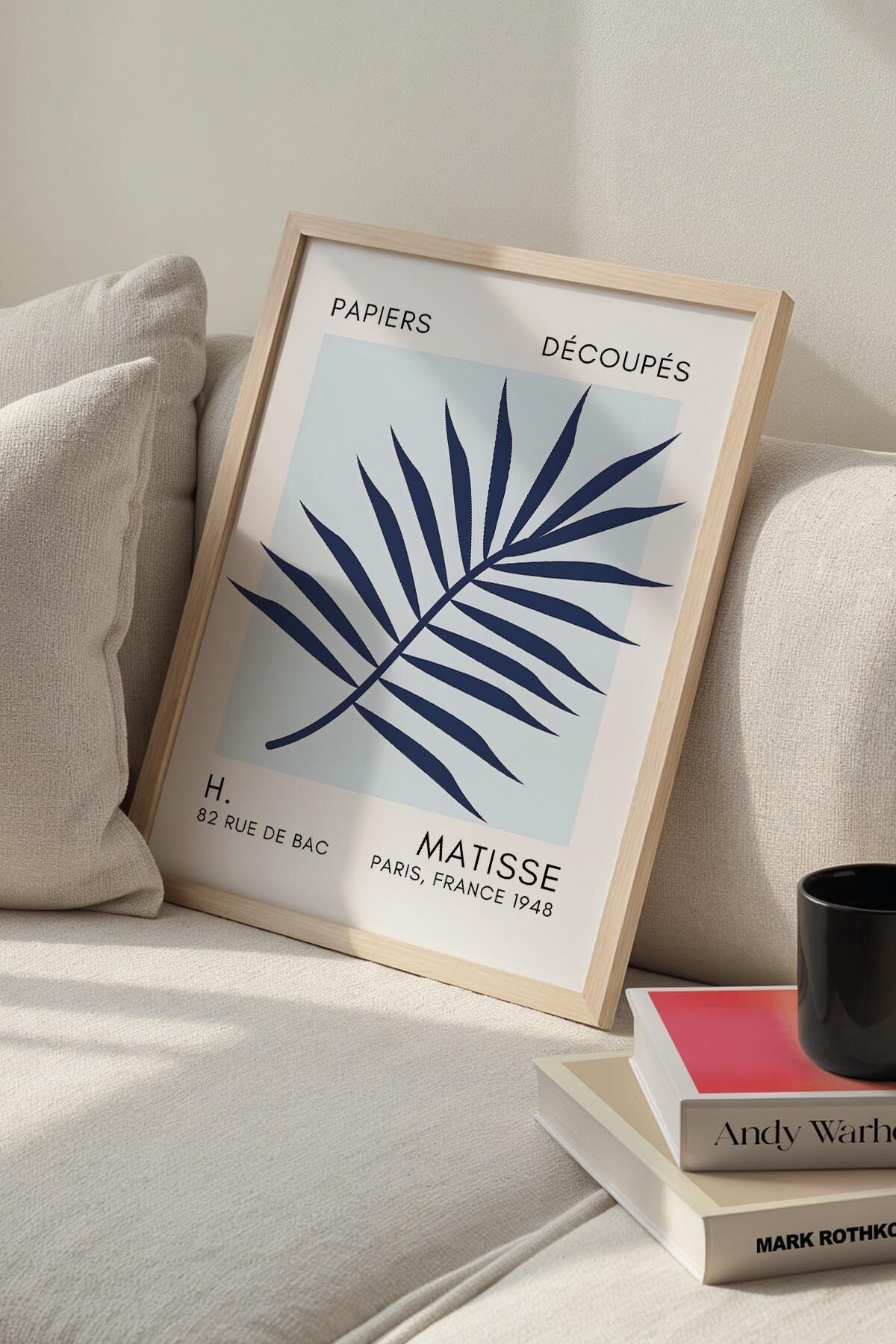 DOĞAL AHŞAP - Botanik Serisi Mavi Çiçekli Matisse Doğal Ahşap Çerçeveli Duvar Tablosu