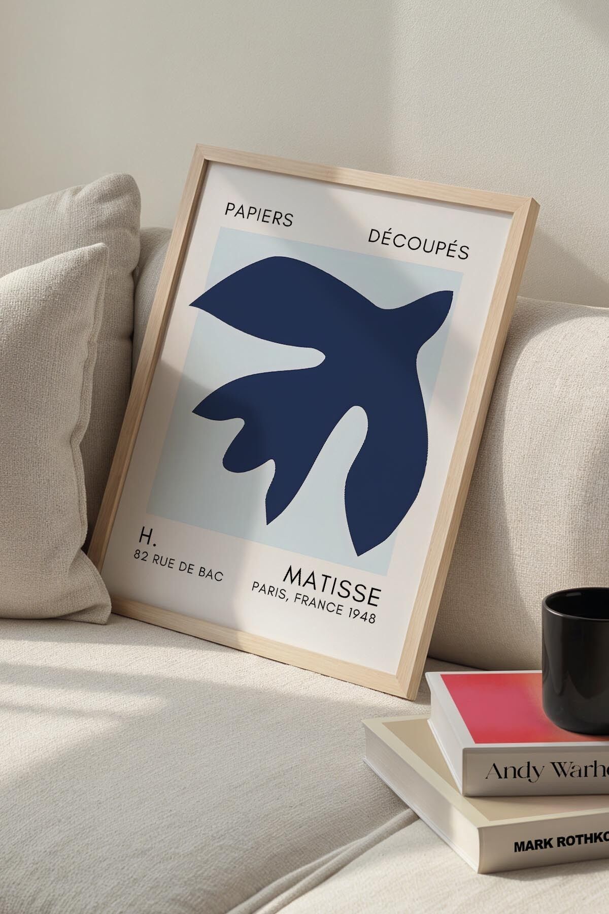 DOĞAL AHŞAP - Botanik Serisi Mavi Çiçekli Matisse Doğal Ahşap Çerçeveli Duvar Tablosu