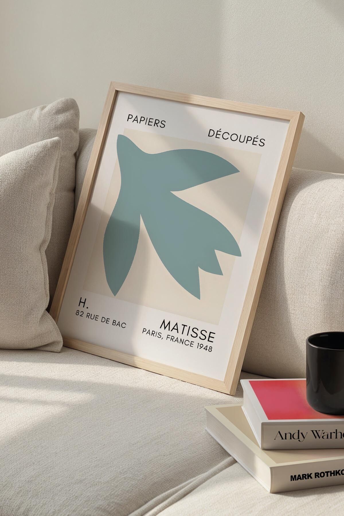 DOĞAL AHŞAP - Botanik Serisi Mint Yeşili Çiçekli Matisse Doğal Ahşap Çerçeveli Duvar Tablosu