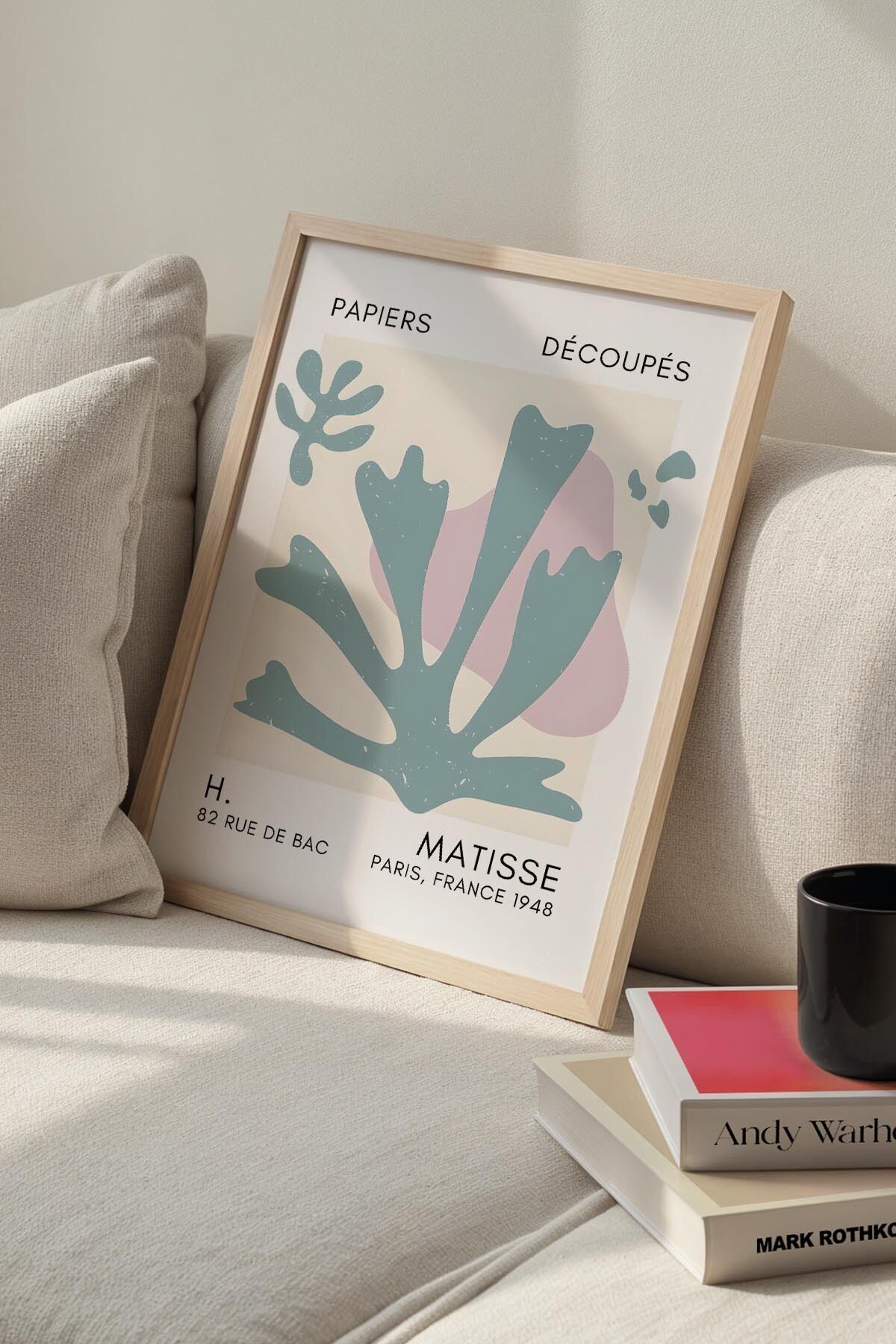 DOĞAL AHŞAP - Botanik Serisi Mint Yeşili Çiçekli Matisse Doğal Ahşap Çerçeveli Duvar Tablosu