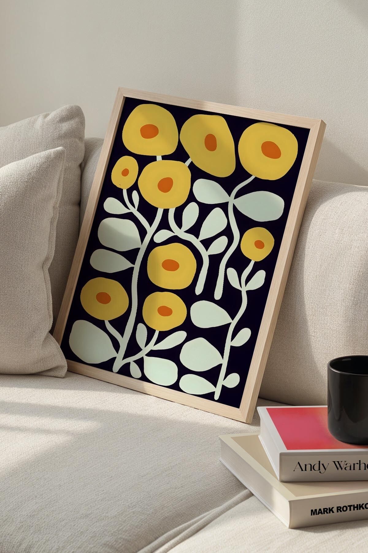 DOĞAL AHŞAP - Botanik Serisi Sarı Çiçekli Matisse Doğal Ahşap Çerçeveli Duvar Tablosu