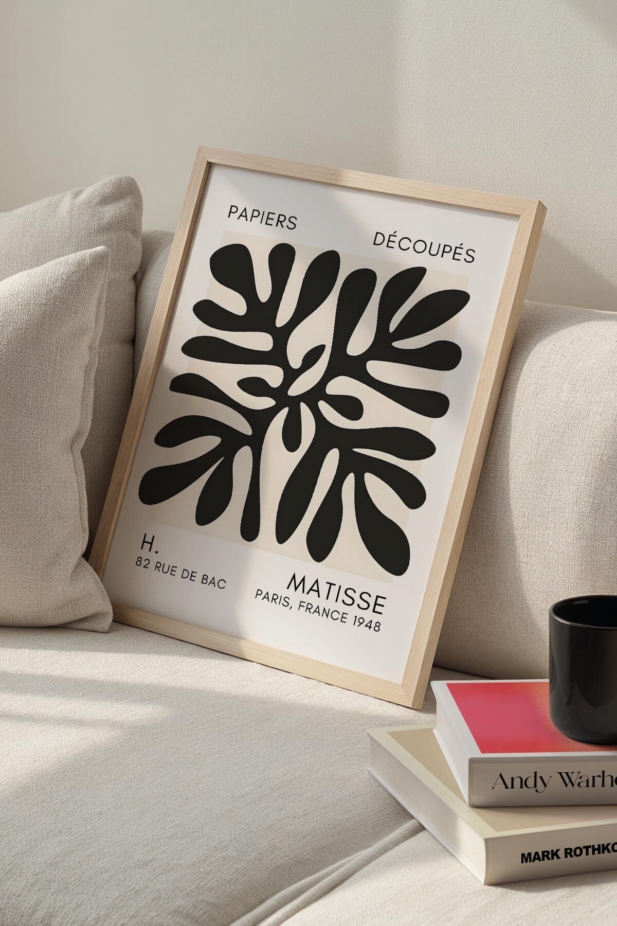 DOĞAL AHŞAP - Botanik Serisi Siyah Çiçekli Minimalist Matisse Doğal Ahşap Çerçeveli Duvar Tablosu