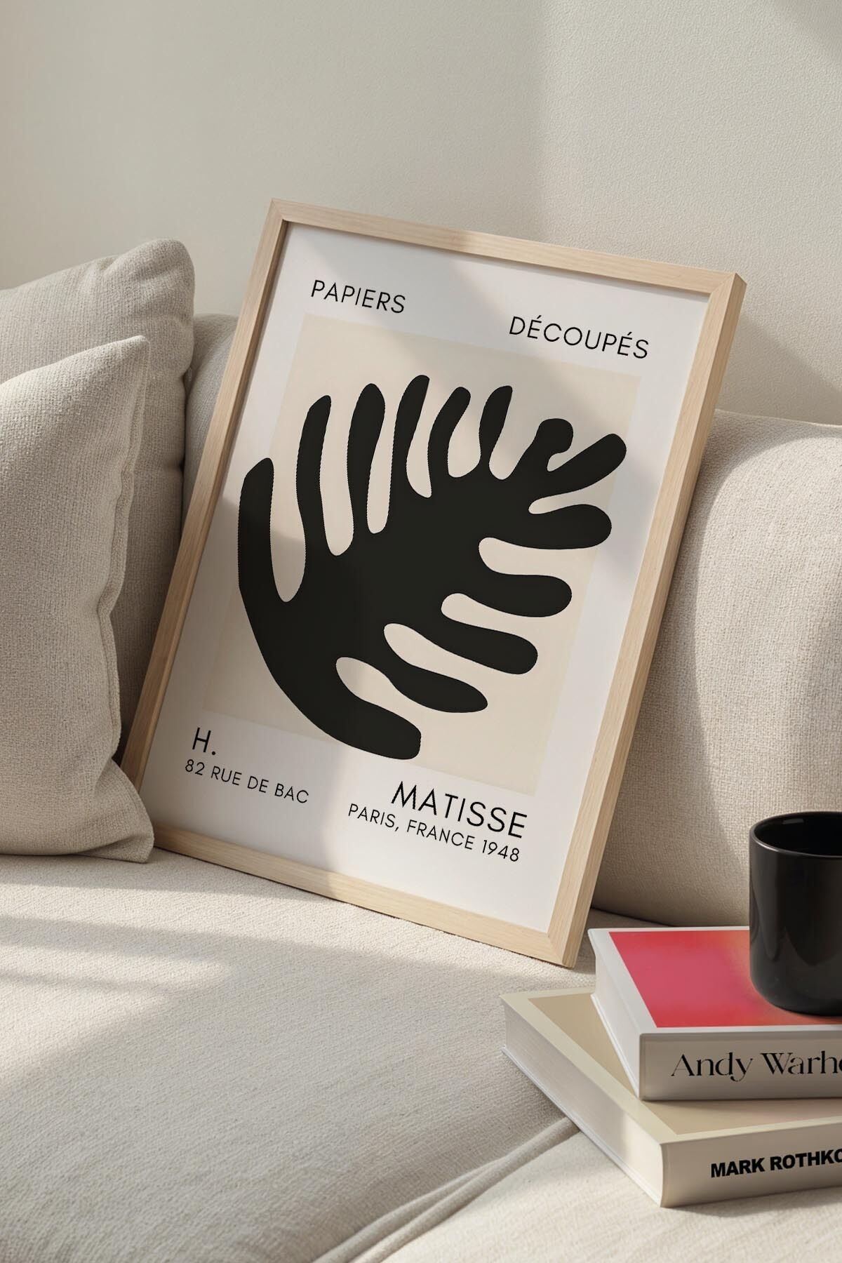 DOĞAL AHŞAP - Botanik Serisi Siyah Çiçekli Minimalist Matisse Doğal Ahşap Çerçeveli Duvar Tablosu