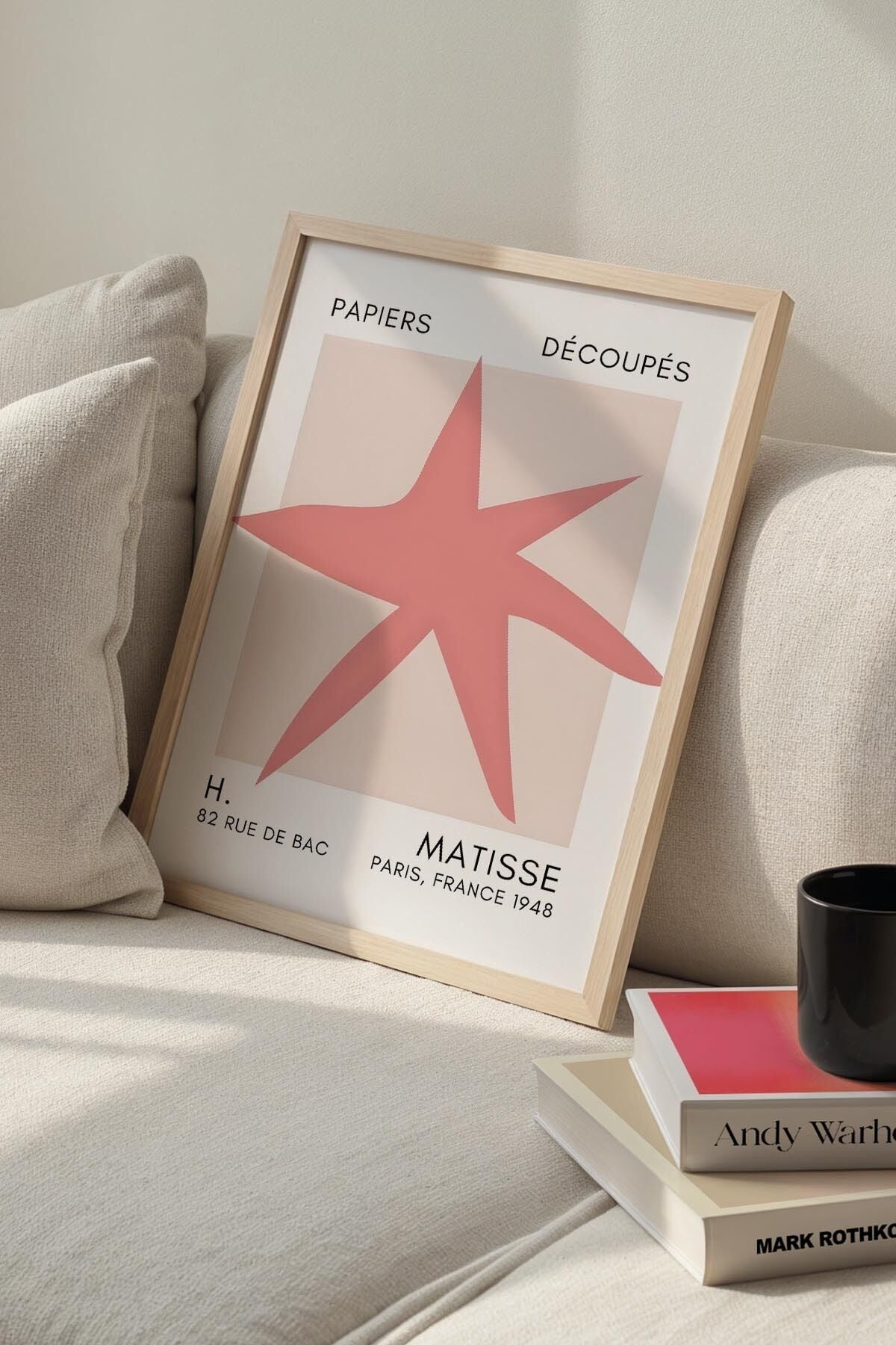 DOĞAL AHŞAP - Botanik Serisi Toz Pembe Çiçekli Matisse Doğal Ahşap Çerçeveli Duvar Tablosu