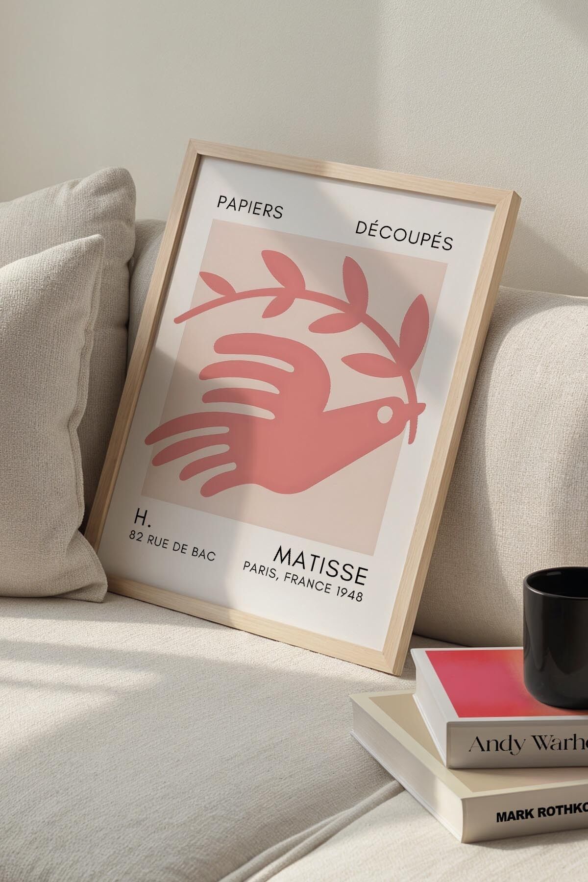 DOĞAL AHŞAP - Botanik Serisi Toz Pembe Çiçekli Matisse Doğal Ahşap Çerçeveli Duvar Tablosu