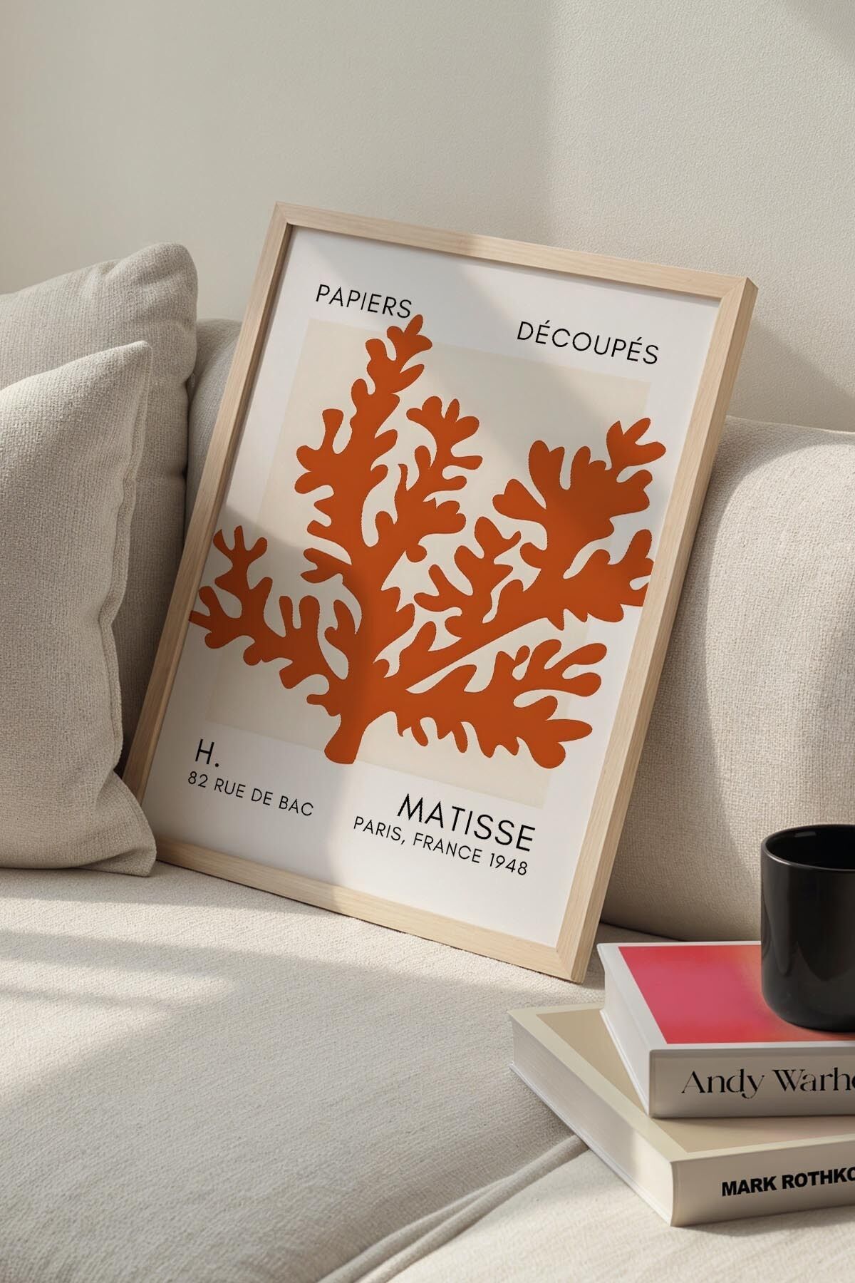 DOĞAL AHŞAP - Botanik Serisi Turuncu Çiçekli Matisse Doğal Ahşap Çerçeveli Duvar Tablosu