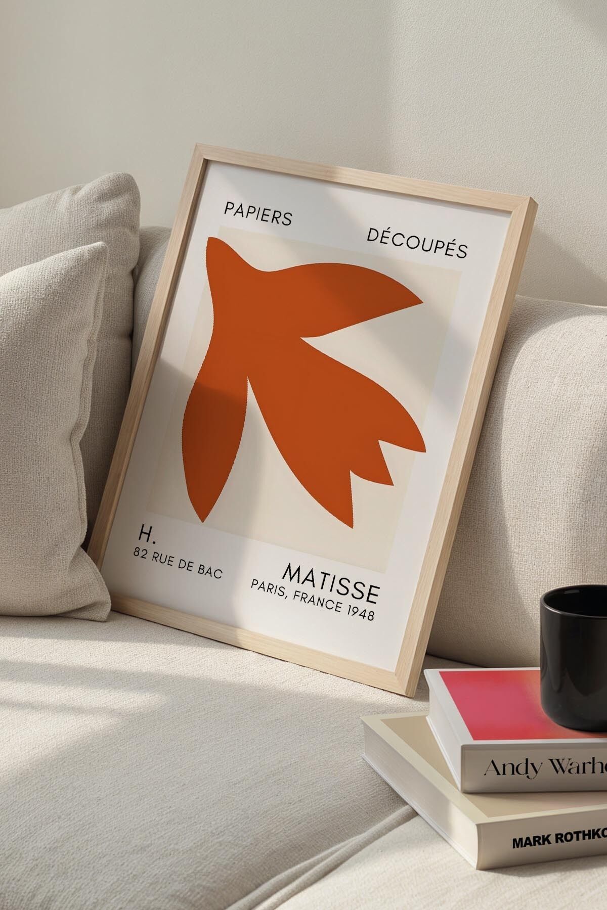 DOĞAL AHŞAP - Botanik Serisi Turuncu Çiçekli Matisse Doğal Ahşap Çerçeveli Duvar Tablosu