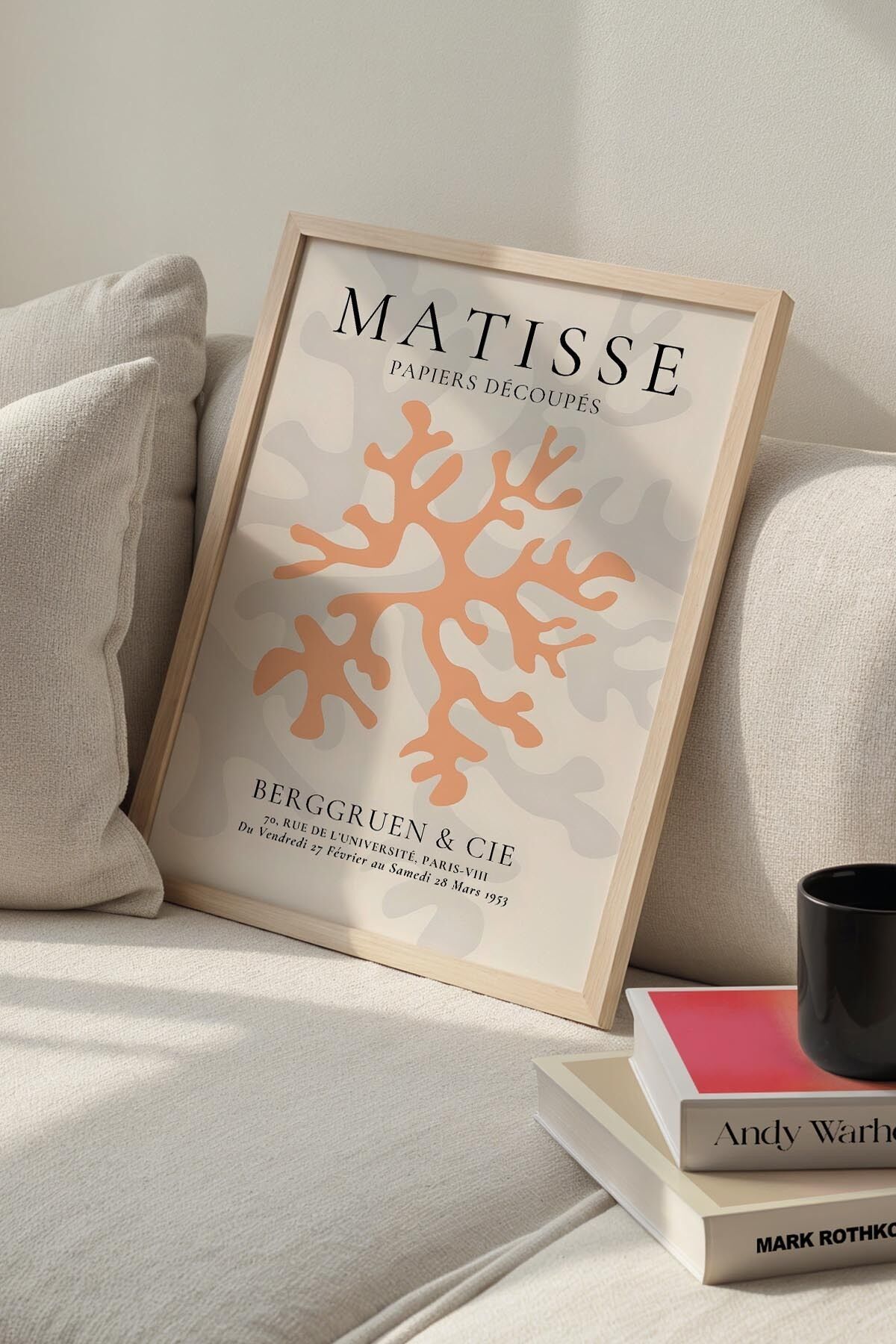 DOĞAL AHŞAP - Botanik Serisi Turuncu Çiçekli Matisse Doğal Ahşap Çerçeveli Duvar Tablosu