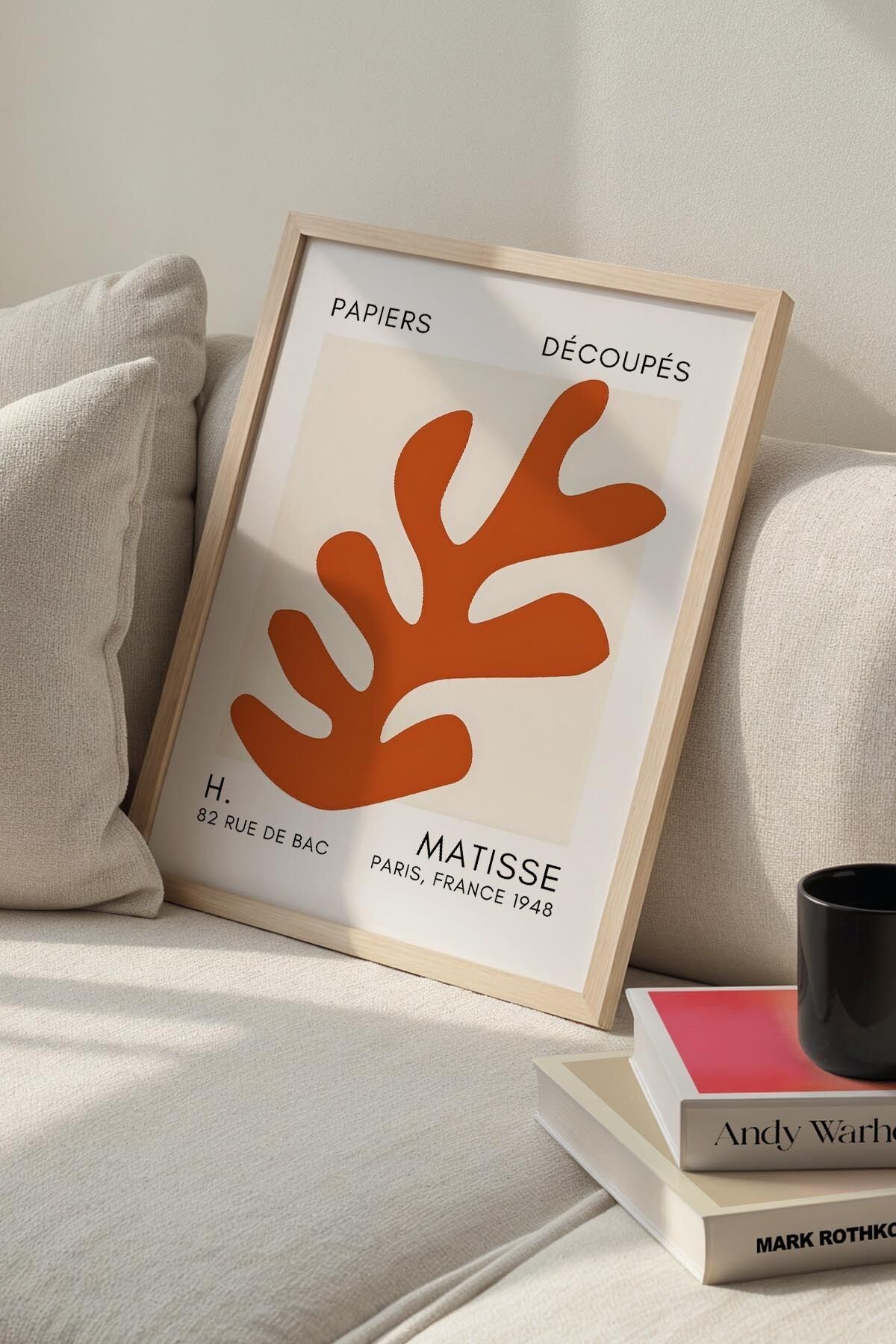 DOĞAL AHŞAP - Botanik Serisi Turuncu Çiçekli Matisse Doğal Ahşap Çerçeveli Duvar Tablosu