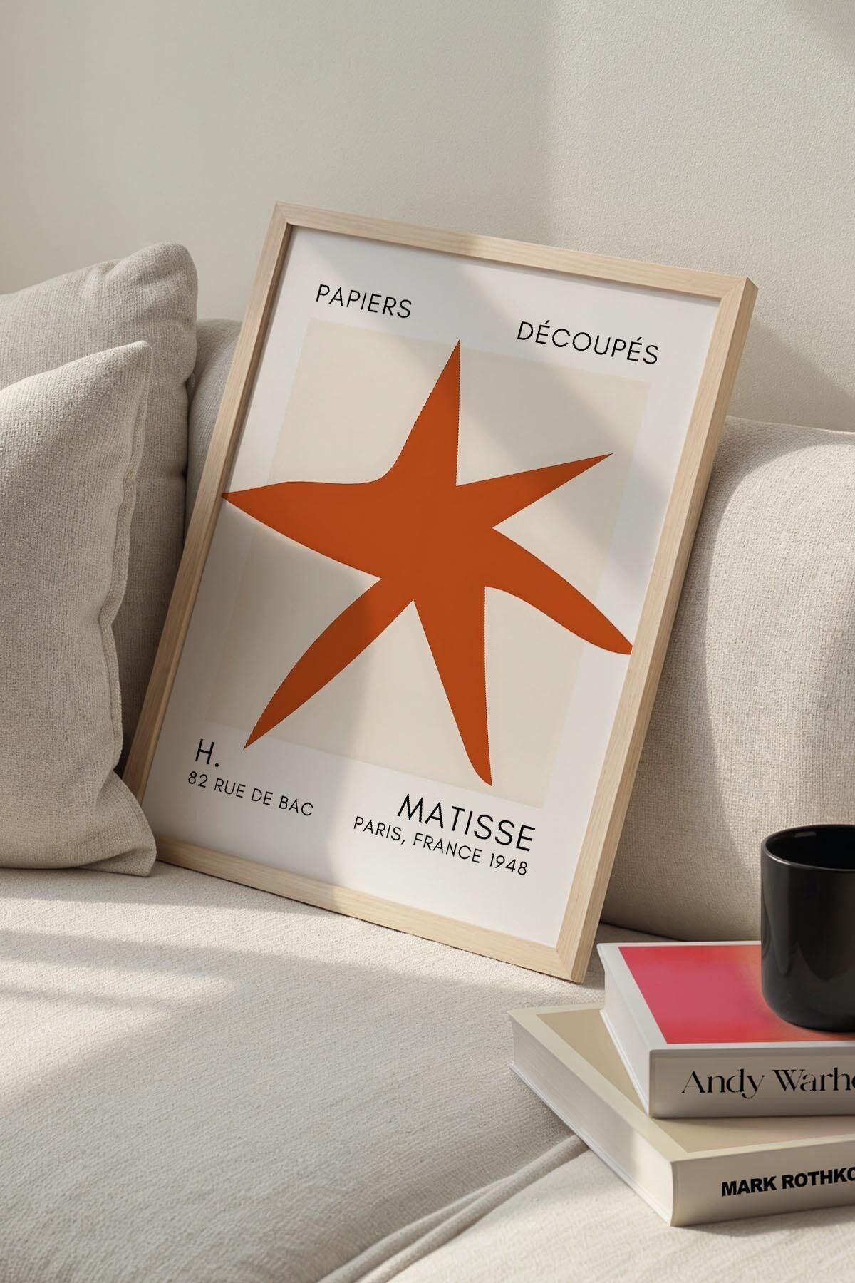 DOĞAL AHŞAP - Botanik Serisi Turuncu Çiçekli Matisse Doğal Ahşap Çerçeveli Duvar Tablosu