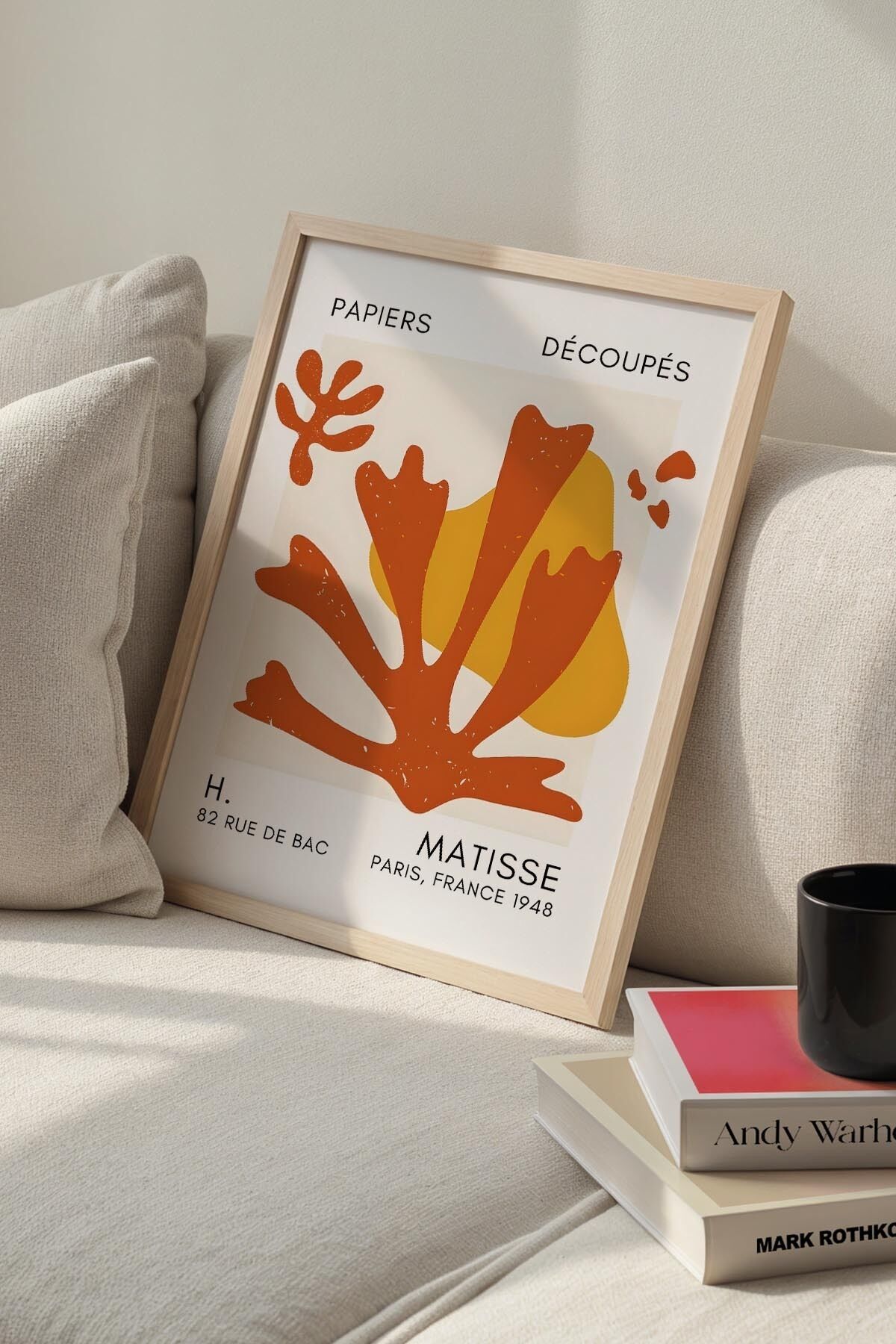 DOĞAL AHŞAP - Botanik Serisi Turuncu Çiçekli Matisse Doğal Ahşap Çerçeveli Duvar Tablosu