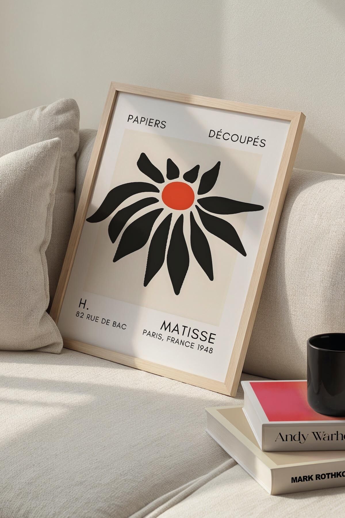 DOĞAL AHŞAP - Botanik Serisi Turuncu Siyah Çiçekli Matisse Doğal Ahşap Çerçeveli Duvar Tablosu