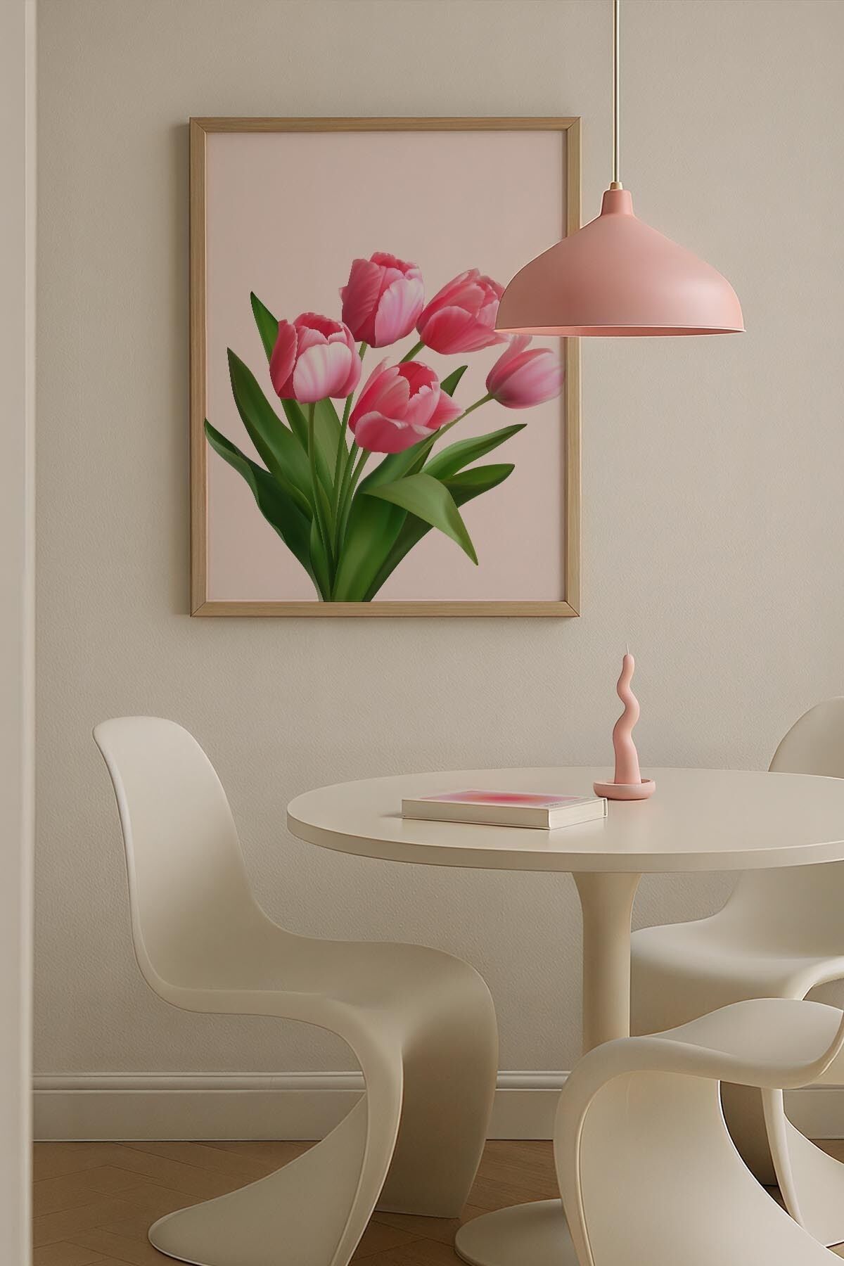 DOĞAL AHŞAP - Çiçek İllüstrasyonu Beyaz Maksimalist Sanatı Ahşap Çerçeveli Duvar Tablosu