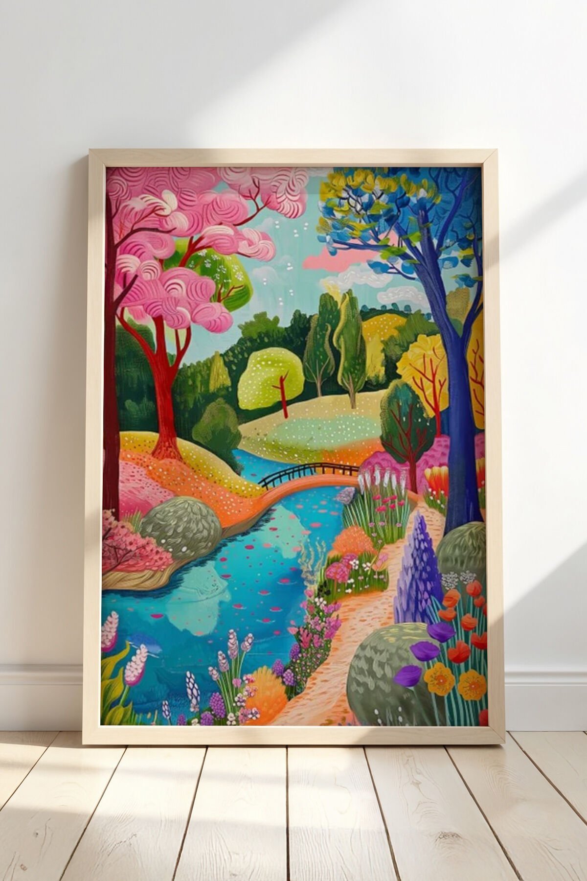 DOĞAL AHŞAP - Çiçek Sanat Eseri - Soyut Çiçek Bahçesi Doğal Ahşap Çerçeveli Duvar tablosu