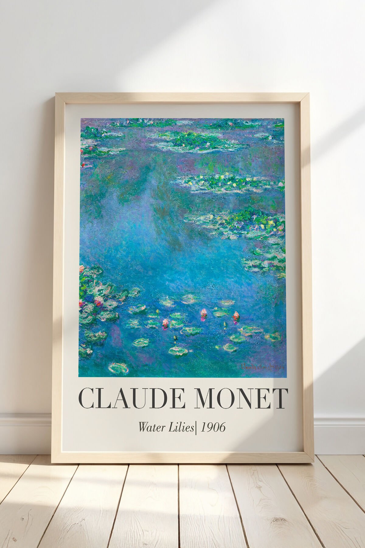 DOĞAL AHŞAP - Claude Monet Su Nilüferleri 1906 Vintage Doğal Ahşap Çerçeveli Duvar Tablosu