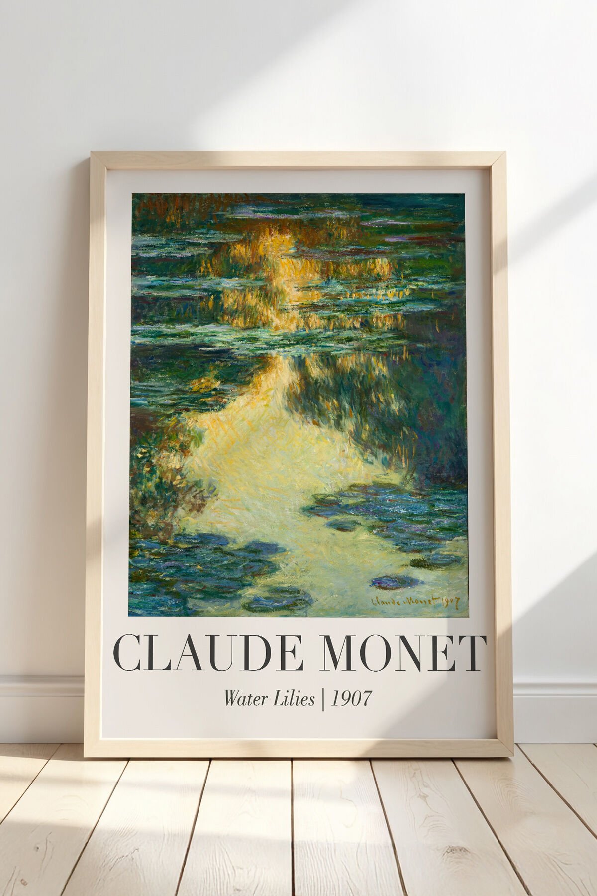 DOĞAL AHŞAP - Claude Monet Su Nilüferleri 1907 Vintage Doğal Ahşap Çerçeveli Duvar Tablosu