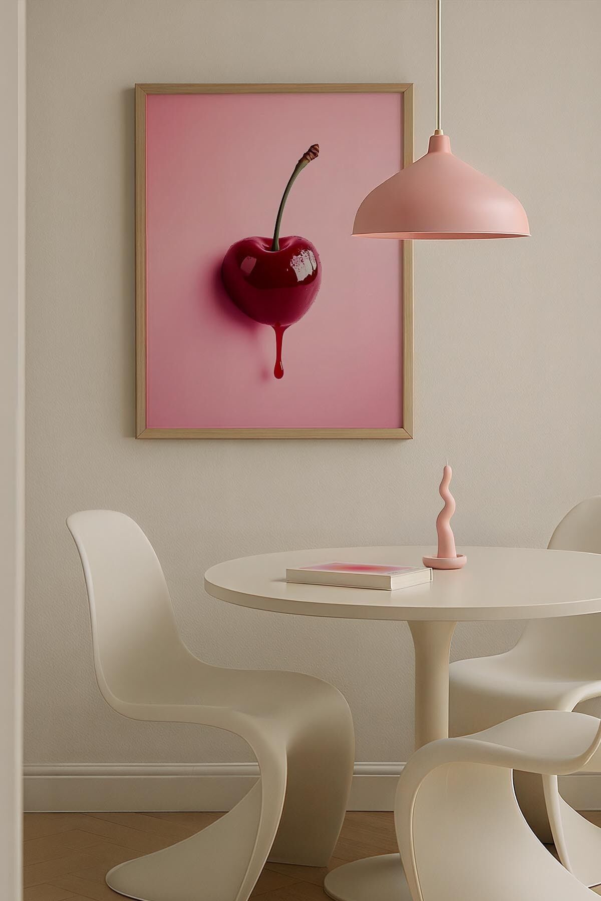 DOĞAL AHŞAP - Damla Kiraz Kalp Form Trendy Maksimalist Sanatı Ahşap Çerçeveli Duvar Tablosu