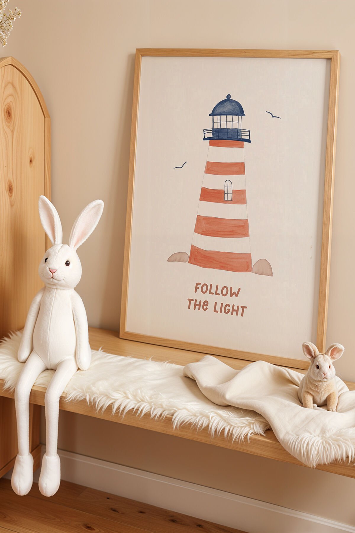 DOĞAL AHŞAP - Deniz Feneri – Doğal Ahşap Çerçeveli Çocuk Odası ve Bebek Odası Tablosu