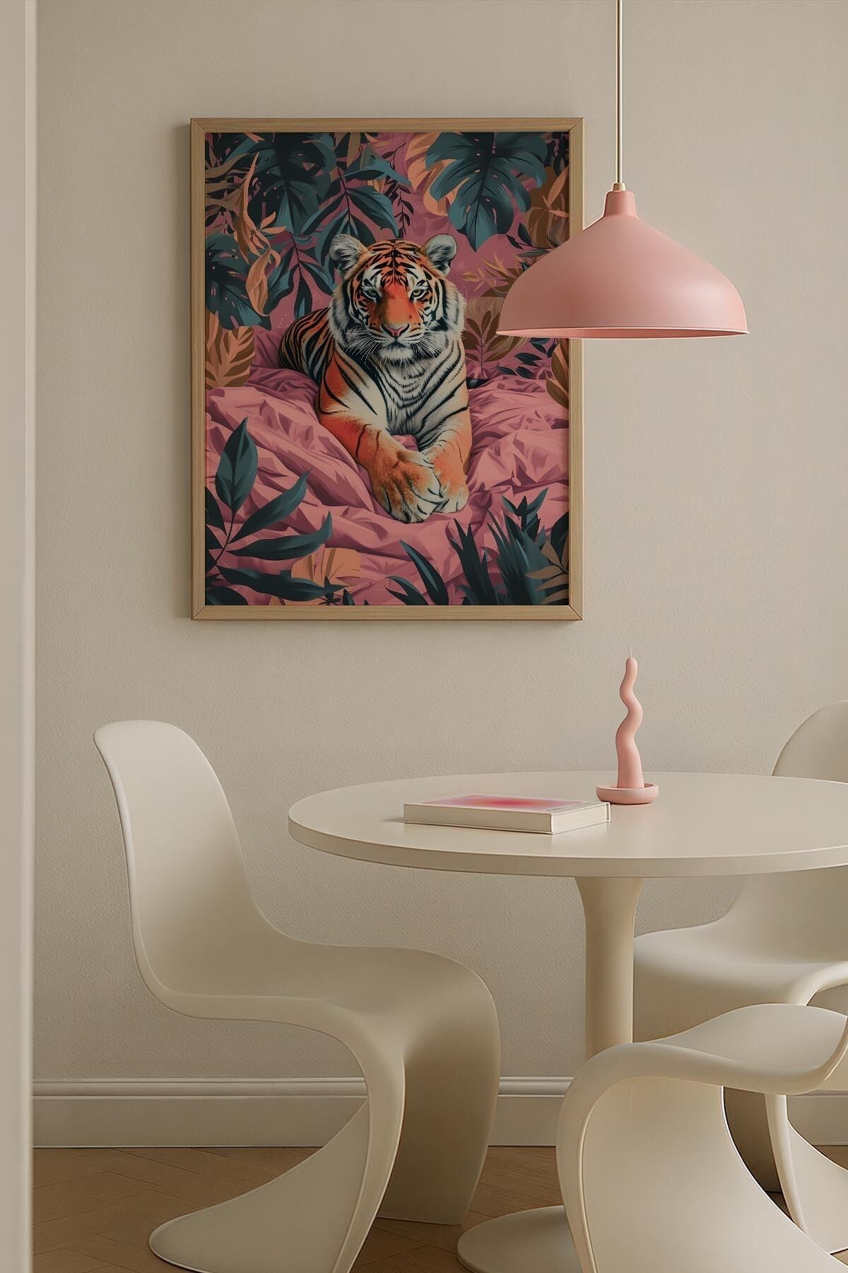 DOĞAL AHŞAP - Doğa Figüratif Renkli Kolaj Trendy Maksimalist Sanatı Ahşap Çerçeveli Duvar Tablosu