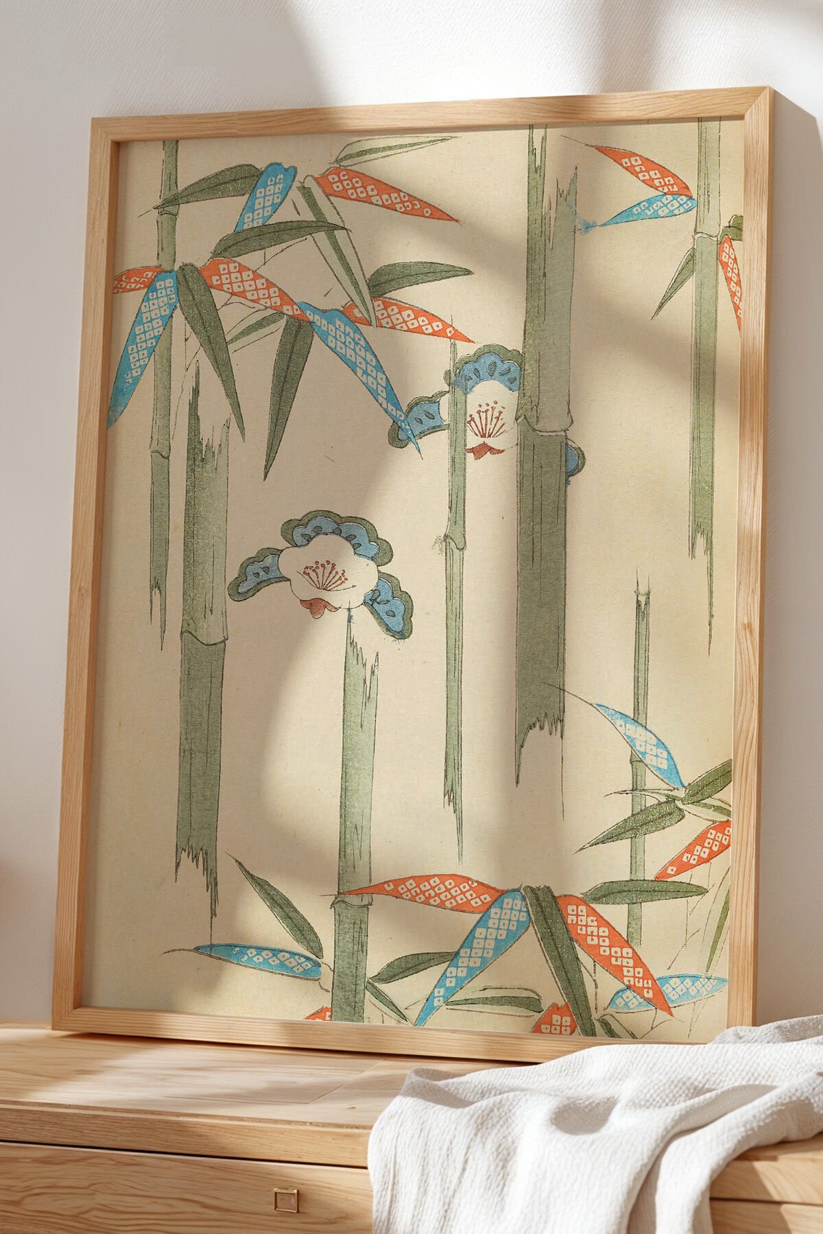 DOĞAL AHŞAP - Doğal Ahşap Çerçeveli Japandi Tablo - Kelebeklerin Zarif Dansı