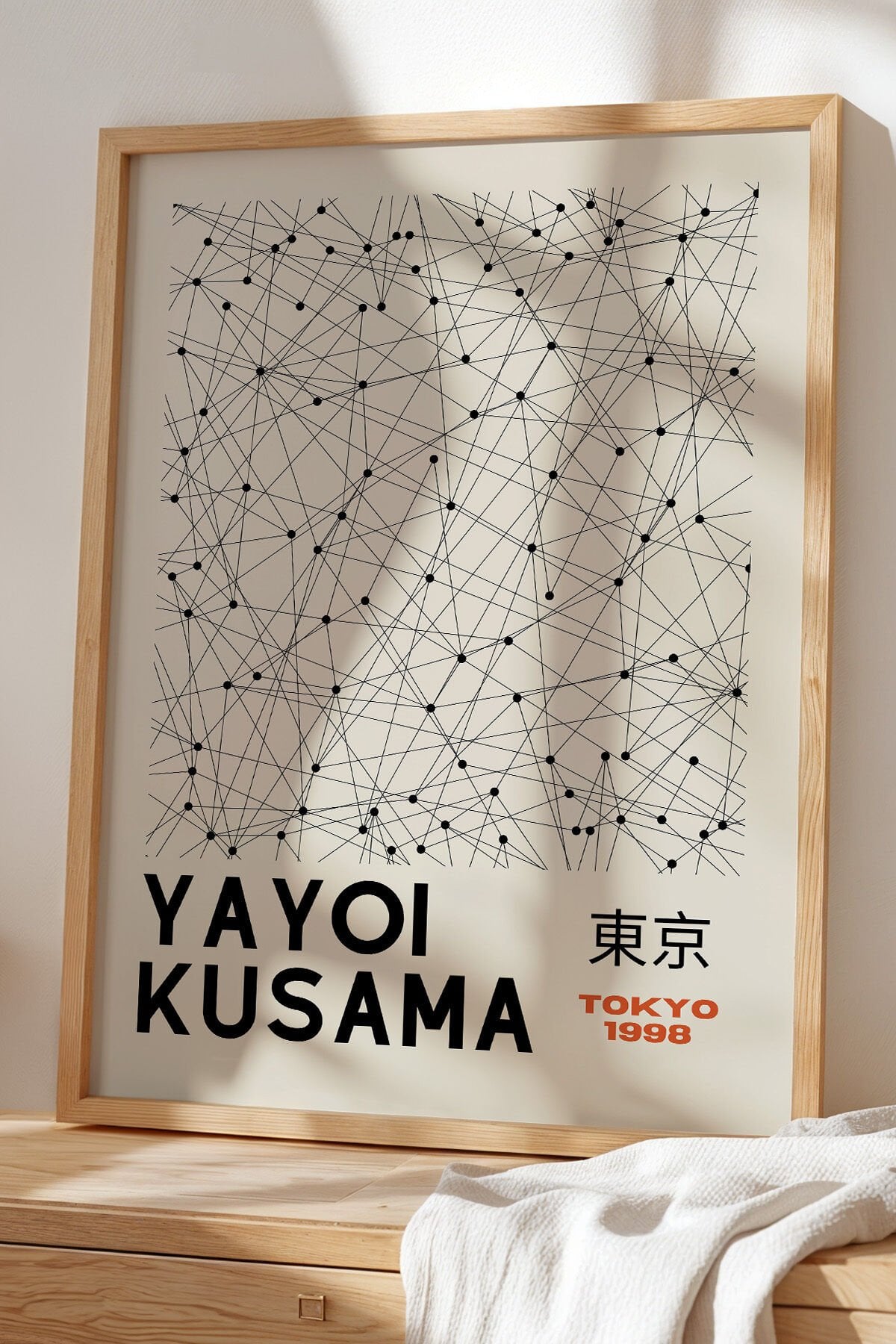 DOĞAL AHŞAP - Doğal Ahşap Çerçeveli Kusama Noktalar Japandi Tablo