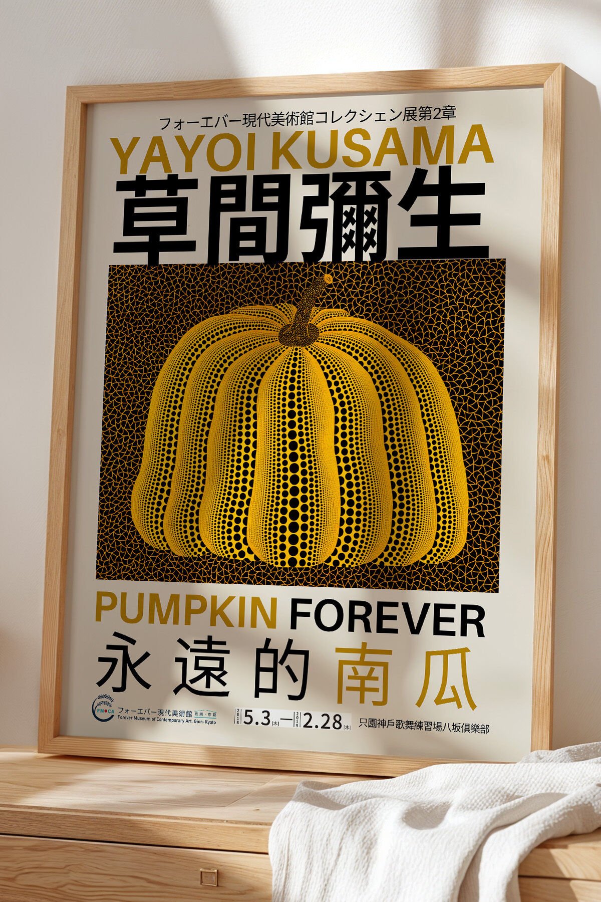 DOĞAL AHŞAP - Doğal Ahşap Çerçeveli Yayoi Kusama Tarzı Minimalist Kabak Tablo