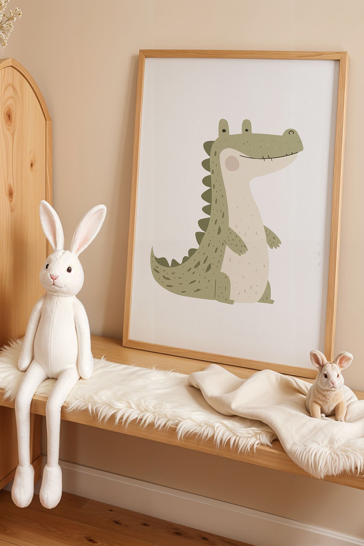 DOĞAL AHŞAP - Dost Canlısı Timsah - Doğal Ahşap Çerçeveli Çocuk ve Bebek Odası Tablosu