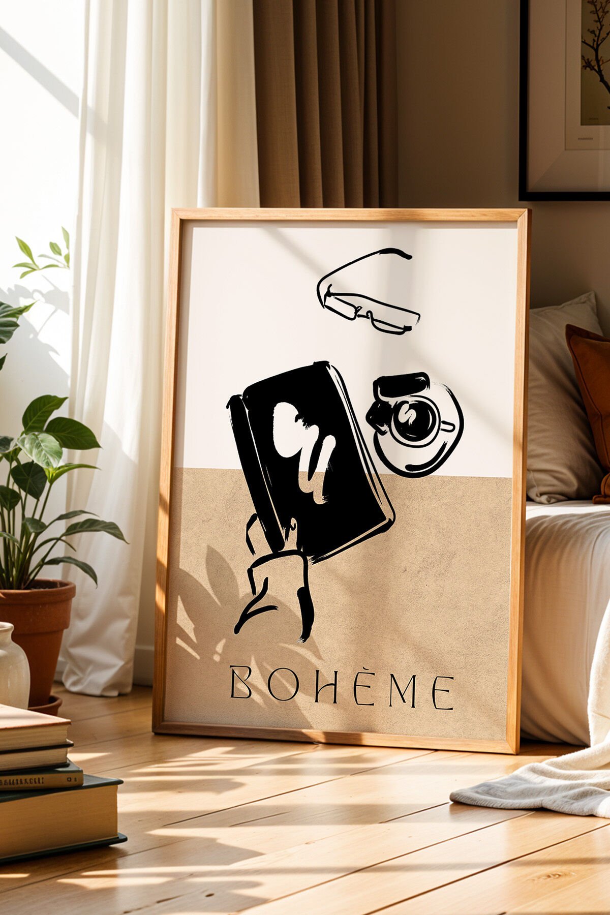 DOĞAL AHŞAP - Estetik Aksesuar Bohem Minimalist Kahverengi Doğal Ahşap Çerçeveli Duvar Tablosu