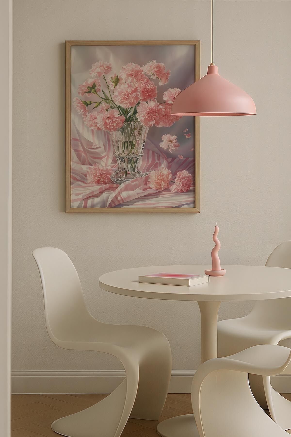 DOĞAL AHŞAP - Floral Patchwork Pembe Vintage Trendy Maksimalist Sanatı Ahşap Çerçeveli Duvar Tablosu