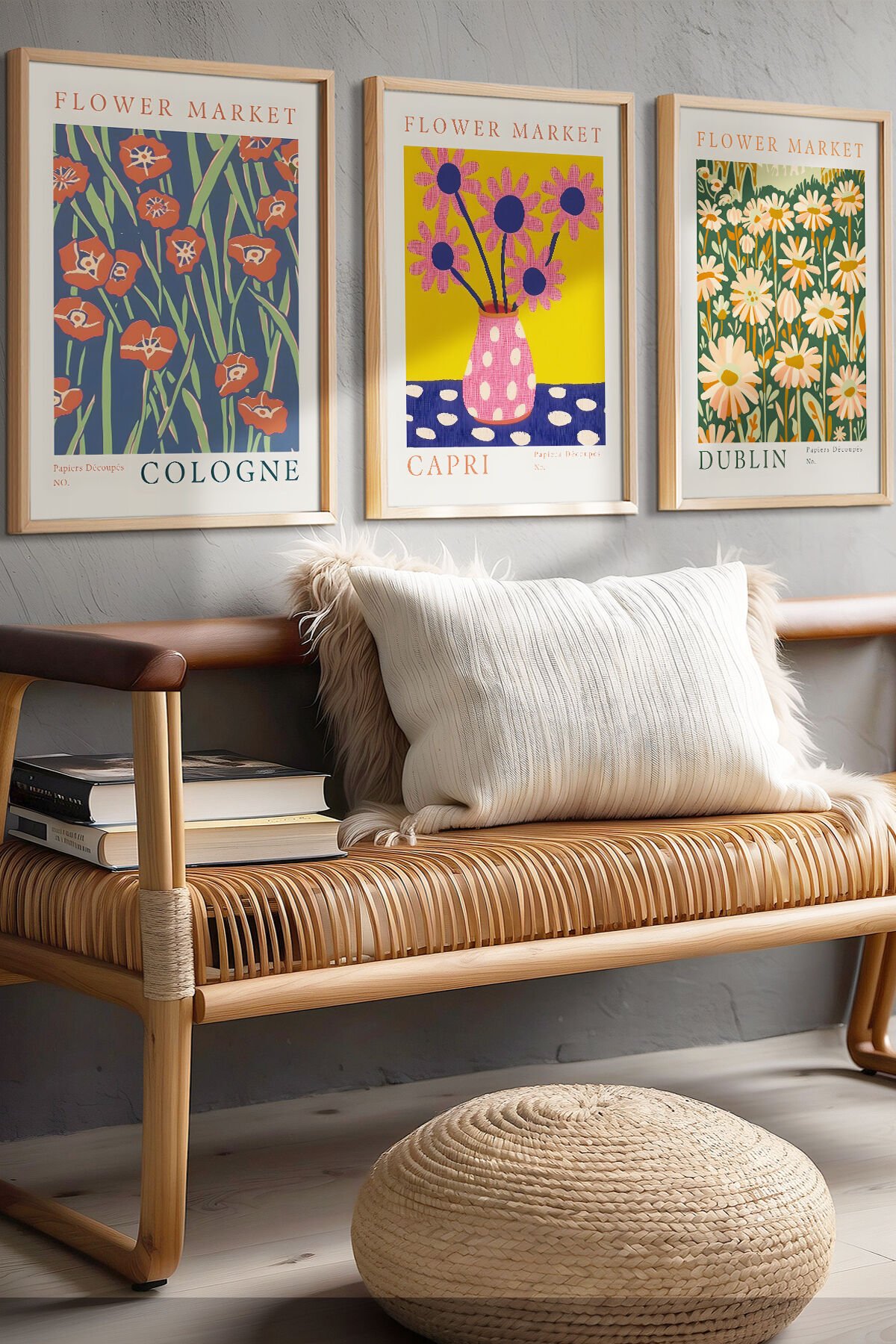 DOĞAL AHŞAP - Flower Market Cologne , Capri – Modern ve Sanatsal Tarzda Ahşap Çerçeveli Çiçek Tablo Seti