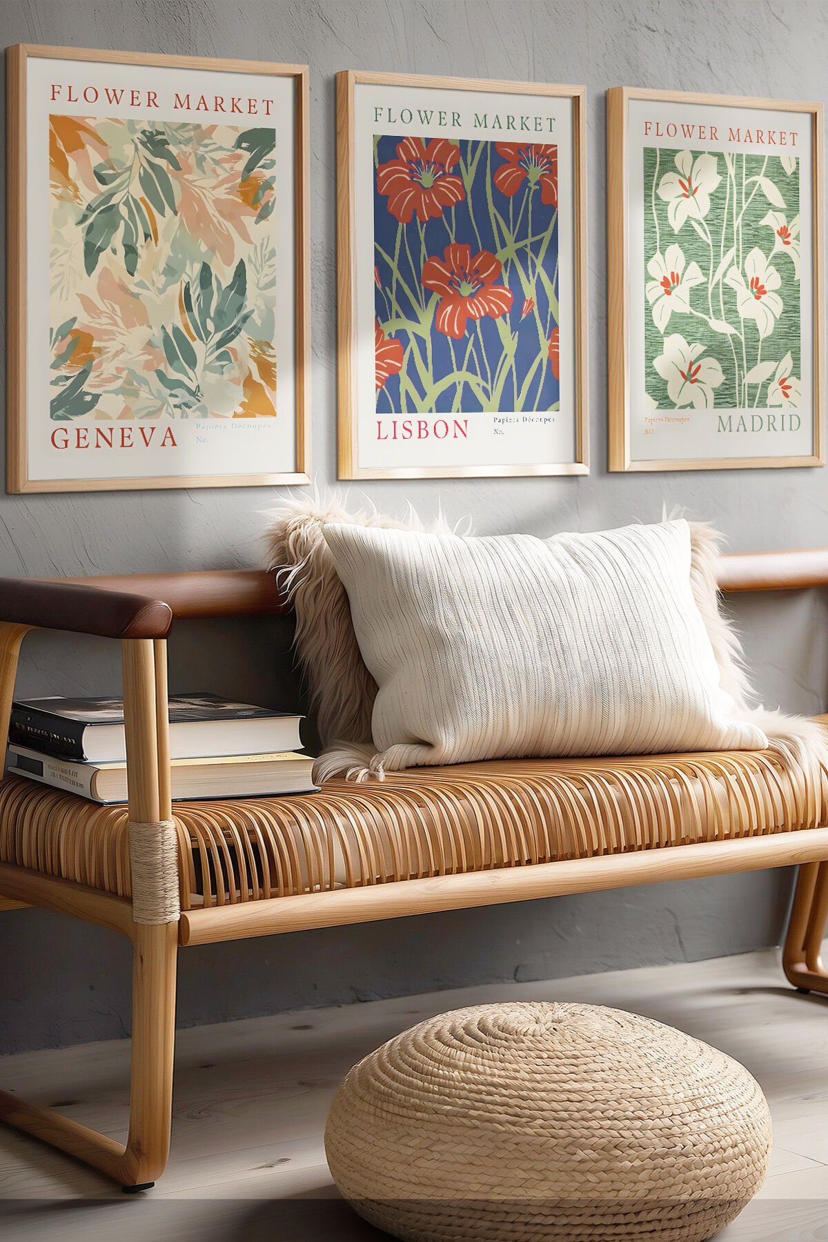 DOĞAL AHŞAP - Flower Market Geneva, Lisbon, Madrid – Modern ve Sanatsal Tarzda Ahşap Çerçeveli Çiçek Tablo Seti