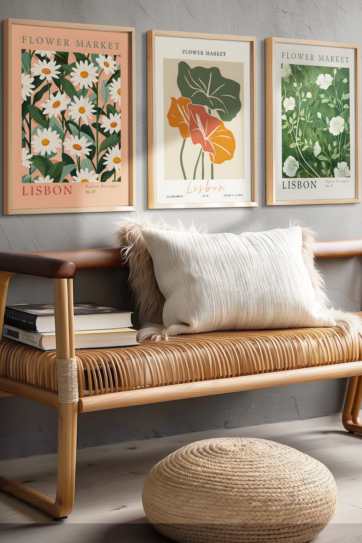 DOĞAL AHŞAP - Flower Market Lisbon – Doğal ve Minimalist Çiçek Temalı Dekoratif Tablo
